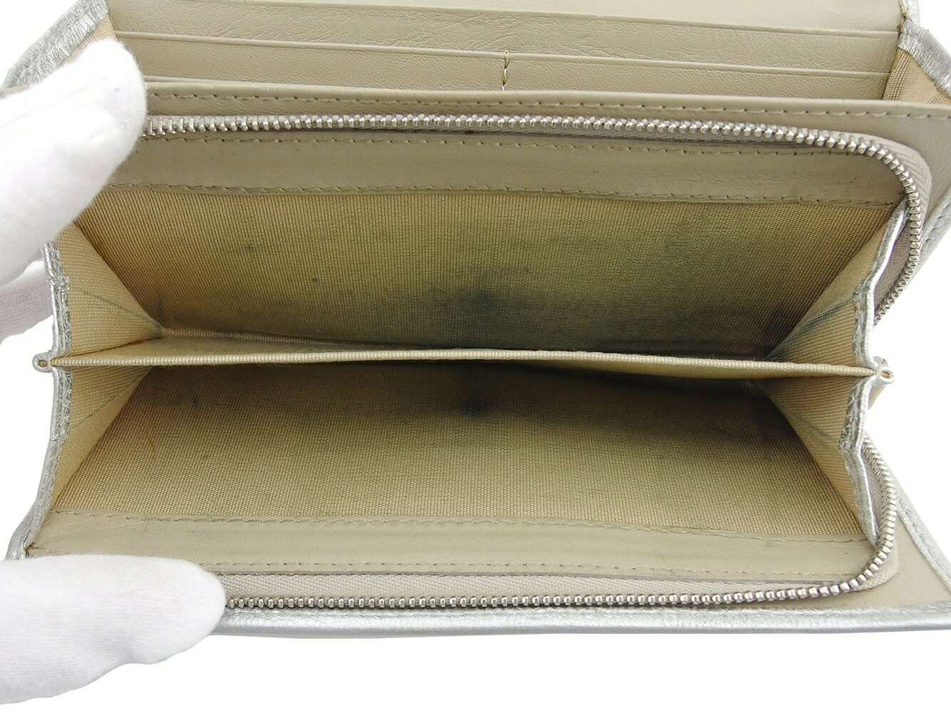 | コンディション | 全体の状態詳細:まだまだ十分にお使いいただけます。 社外リペア跡(スレ色着色)。小銭入れに、スレ&黒ずみあり。その他 スレ&汚れ(札入れ&ポケットもあり) 金具傷・ハゲ 角擦り切れ コバヒビ割れ(ファスナープル革) ラメハガレ などの使用感があります。 |