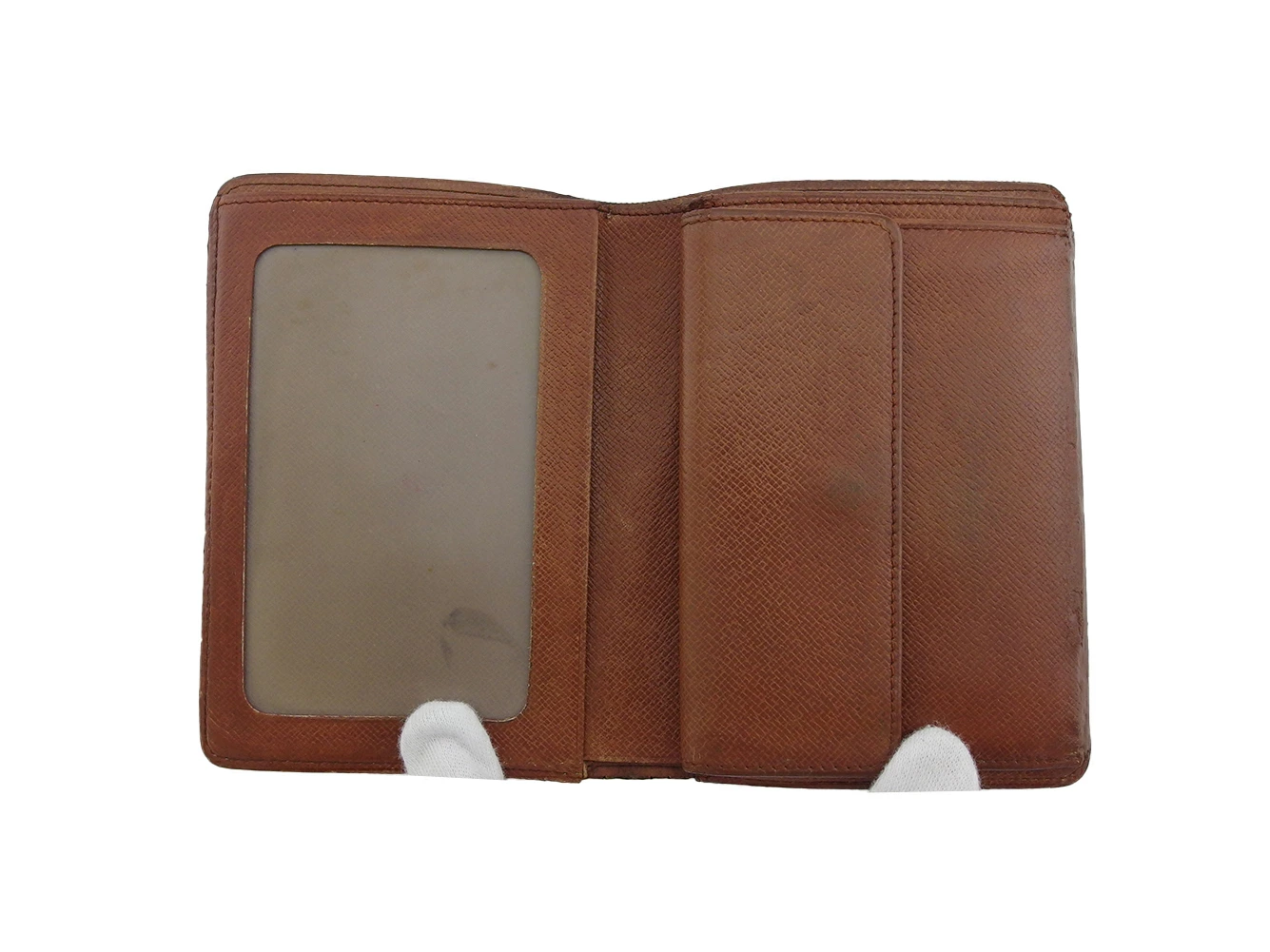 | コンディション | 全体の状態詳細:大きなダメージは無く、まだまだご使用いただけます。 社外リペア跡(折り曲げ部分のコバの傷み補修、小銭入れ下部にのレザーの傷み補修)あり。 外側:モノグラムキャンバス(若干の反り、角スレ、コバに補修跡)あり。 内側:レザー(スレ、汚れ)、窓付きポケット(窓フィルムに汚れ&傷)、小銭入れ(被せにボタン跡、傷、汚れ、内側に小銭によるスレ&傷&汚れ)、札入れ内(傷、スレ、汚れ、内張レザーの剥がれ)あり。 その他、目立たない 傷 汚れ などの一般的使用感がある場合がございます。ご了承ください。 |