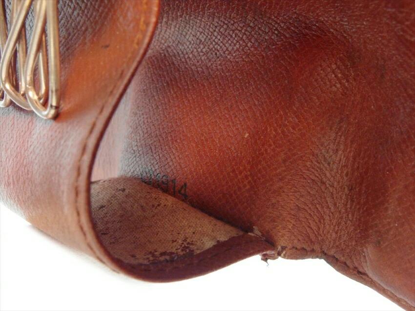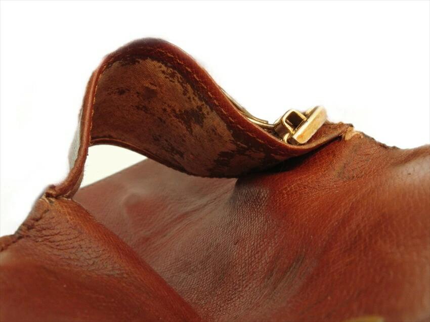 社外リペア跡(角接着、内側着色)あり。その他 スレ&汚れ(内側&ポケットもあり) シミ(内側) 型崩れ 金具傷・ハゲ ほつれ&ヒビ割れ(角) コバ割れ ハガレ(ポケット) などの使用感があります。