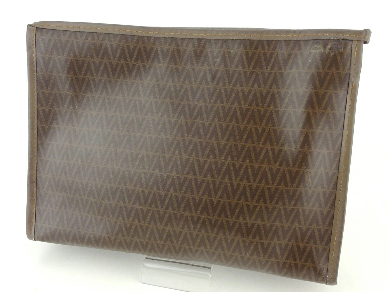 [Rakuten Super Sale ★ Up to 50% Off] Mario Valentino Clutch Bag with V-Mark in Brown, Beige, and Gold. Men's. Pre-owned. High-end Vintage.
