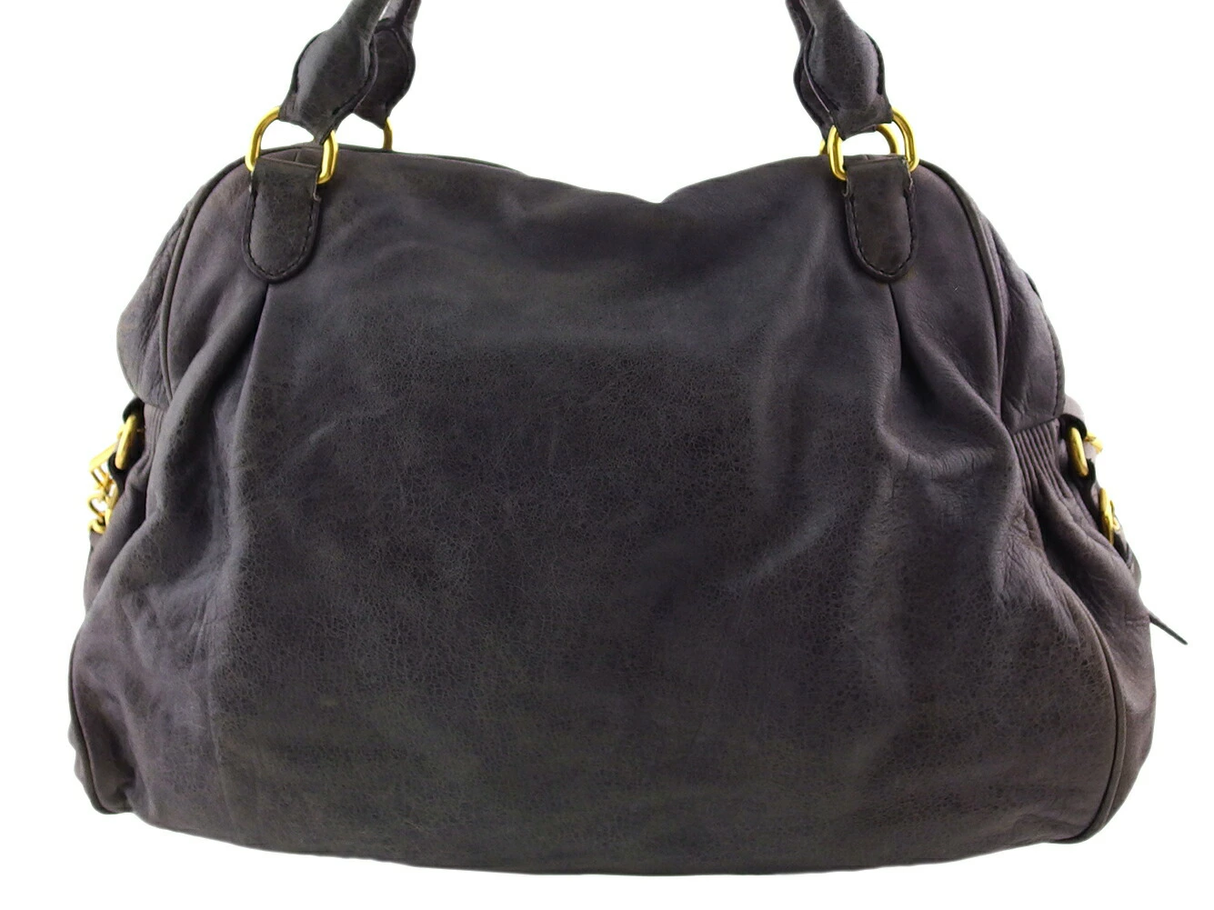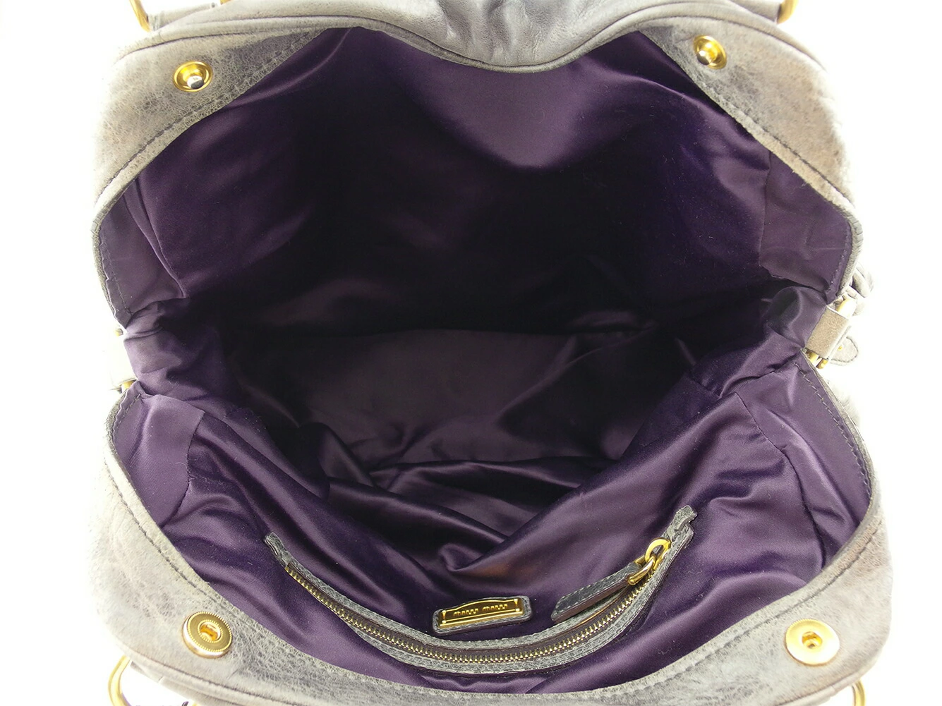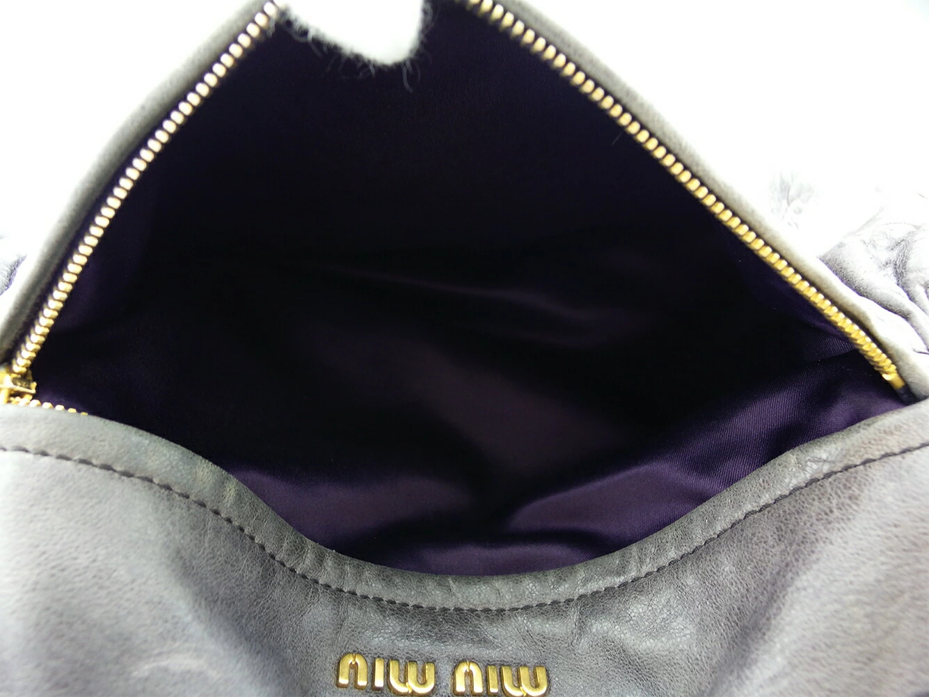 [Rakuten Super Sale ★ Up to 50% Off] Miu Miu Shoulder Bag with Cadena Charm in Gray, Purple, and Gold. Men's. Pre-owned. High-end Vintage.