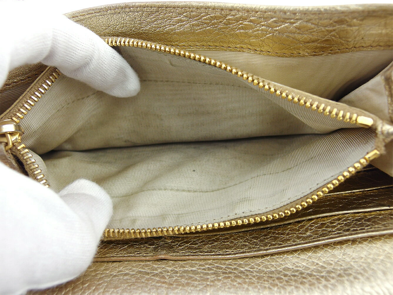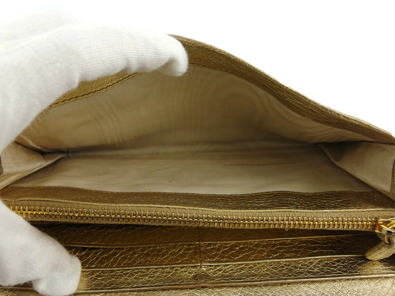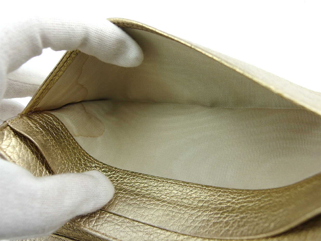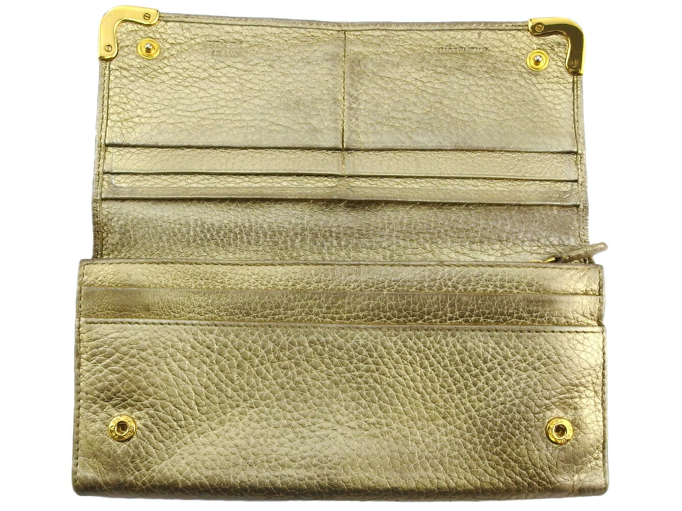 | コンディション | 全体の状態詳細:まだまだお使いいただけます。 社外リペア跡(スレ色着色)。小銭入れに、スレ&黒ずみあり。その他 スレ&汚れ(内側&札入れ&ポケットもあり) 金具傷・ハゲ シミ&湿り気(札入れ&カード入れ&ポケット) コバヒビ割れ(ファスナープル革) ラメハガレ(小) などの使用感があります。 |