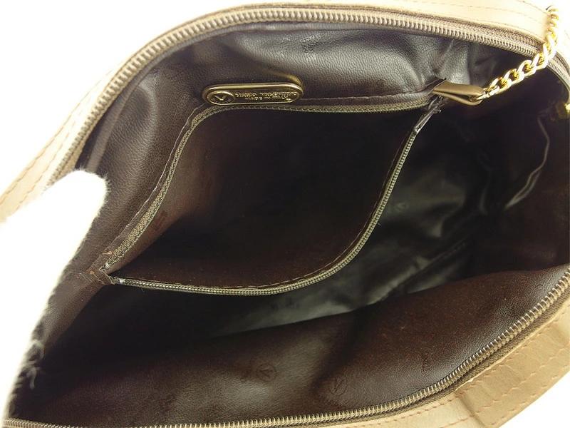 | コンディション | 全体の状態詳細:若干の使用感はございますが内側は綺麗で状態が良く、まだまだご使用いただけます。PVC(裏側に1箇所点状の傷、)、持ち手&レザーパーツ(傷&汚れ&スレ)、ファスナー金具&装飾金具類(傷、錆、変色、くすみ)、Vロゴ(メッキハゲ、くすみ、変色)あり。その他、中古品のため 目立たない傷・汚れ などの一般的使用感がございます。 |