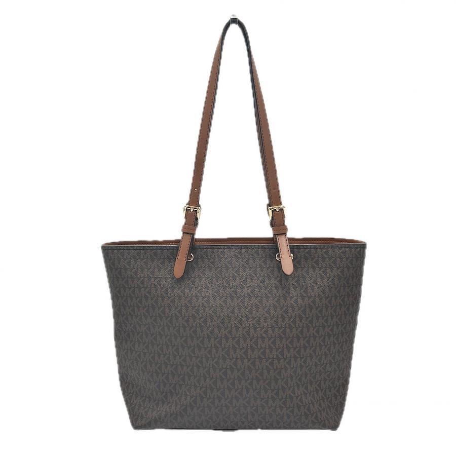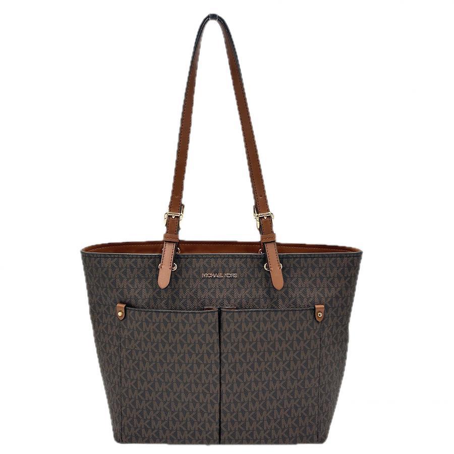 | スタッフコメント | MICHAEL KORSの定番人気ライン、シグネチャー柄のトートバッグです。ブランドの頭文字「MK」が散りばめられた、クラシックでおしゃれなデザイン。シックなブラウンカラーに、落ち着いたレザーのハンドルが映え、上品な印象を与えます。 A4サイズが収納できる実用的なサイズ感で、ビジネスシーンや通勤・通学に最適。内外にポケットがあり、荷物をすっきりと整理できます。肩掛けしやすいハンドルの長さで、デイリーユースに大活躍するアイテムです。 使用感はありますが、マイケルコースの丈夫な作りで、まだまだ長くお使いいただけます。新しいトートバッグをお探しの方や、マイケルコースがお好きな方におすすめです。 |
