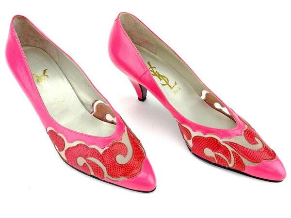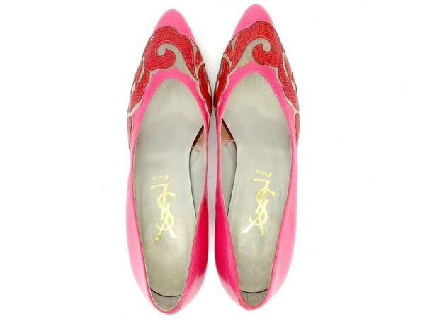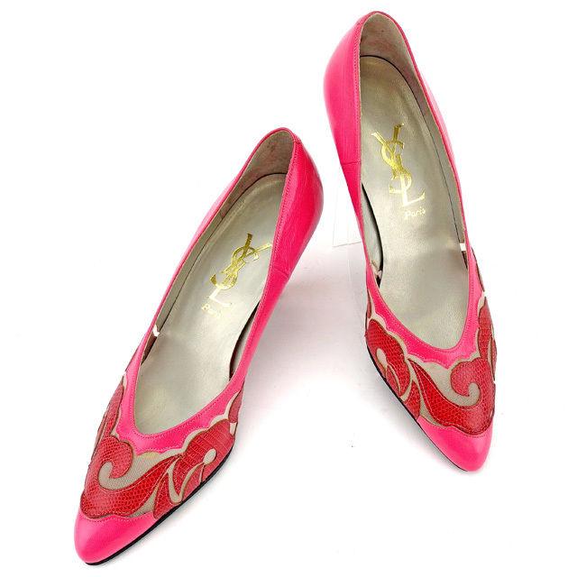 [Rakuten Super Sale ★ Up to 50% Off] Saint Laurent Pumps with Lizard-Look Switch #35 Half Pink and Red, Women's, Pre-owned, High-End Brand, Vintage