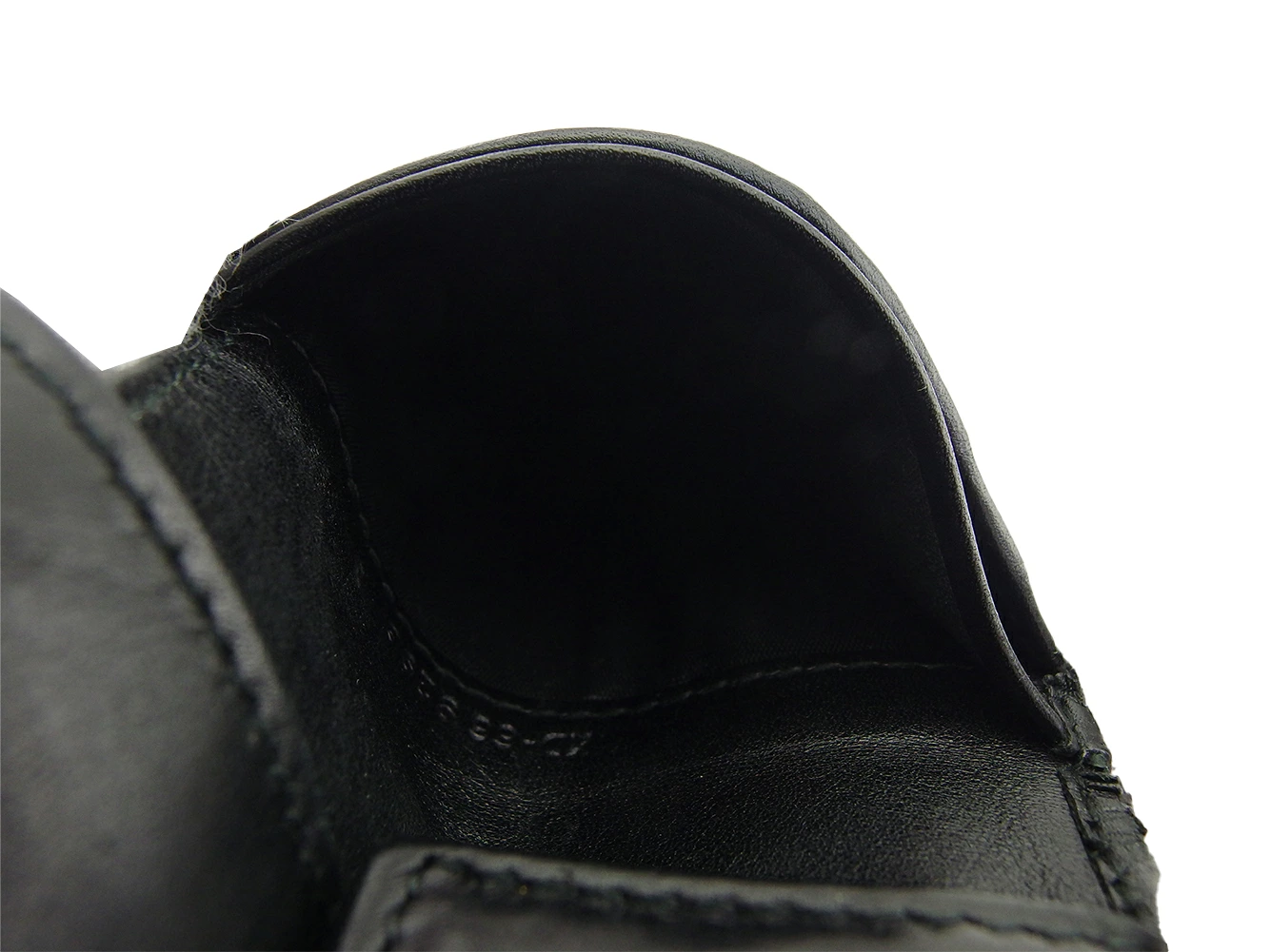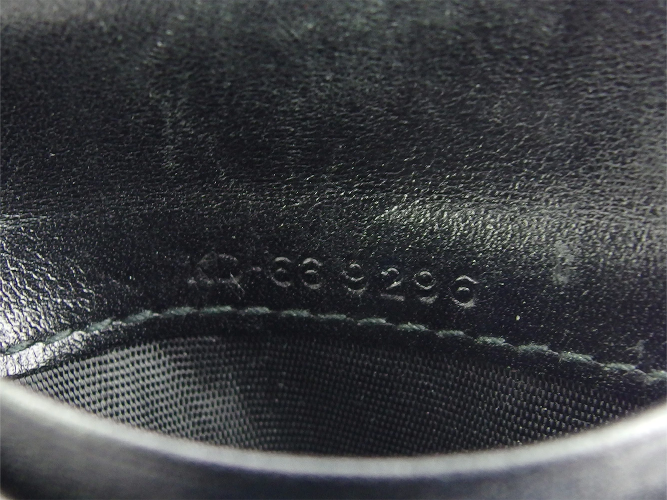 内側:小銭入れ(内張レザーの張り替え補修跡)、カード入れ(カード跡、内側に汚れ)あり。