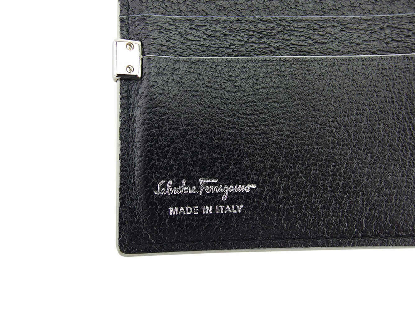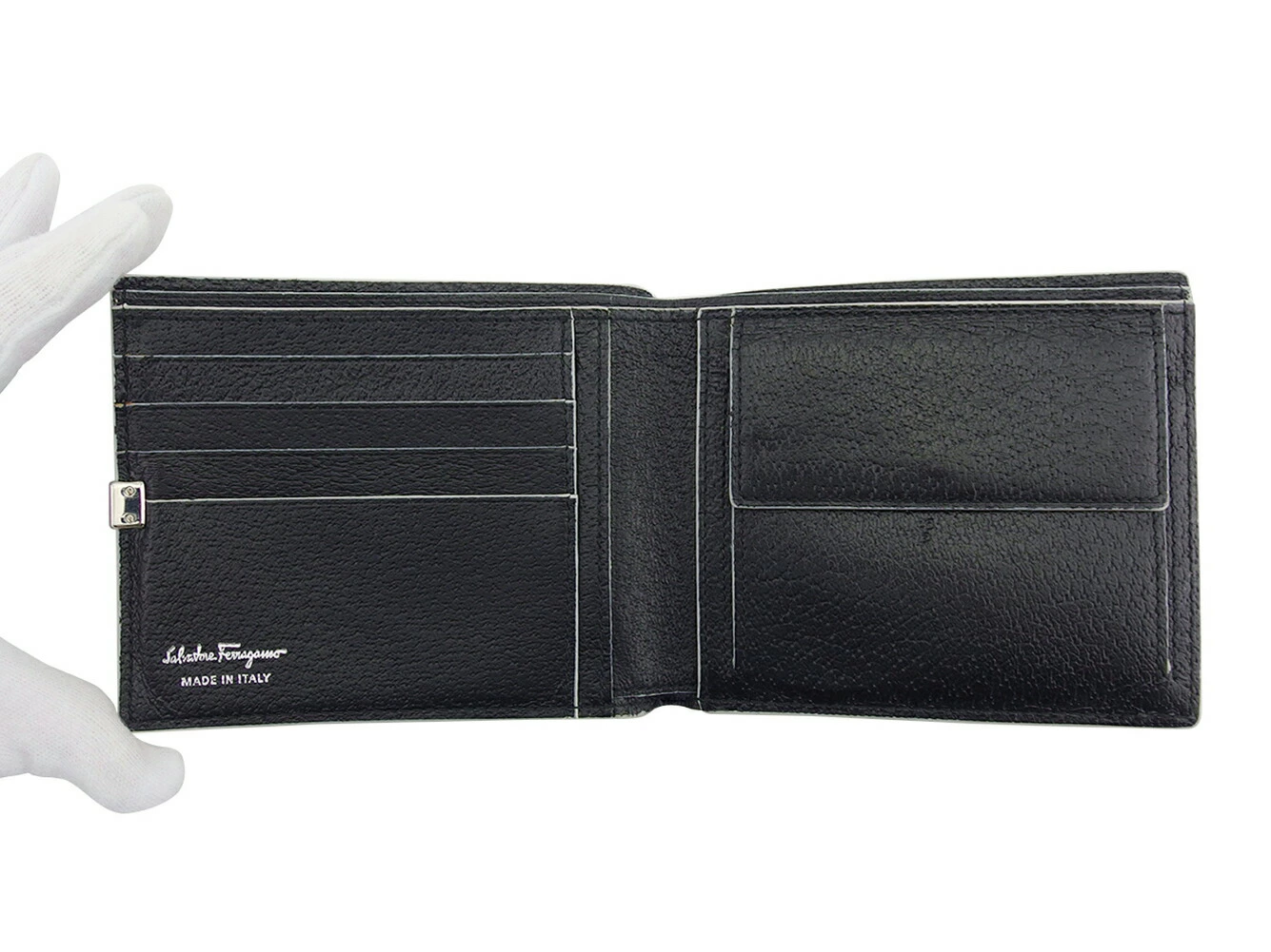 [Rakuten Super Sale ★ Up to 50% Off] Salvatore Ferragamo Bifold Wallet with Logo Plate, Black and Silver, Men's, Pre-owned, High-End Brand, Vintage