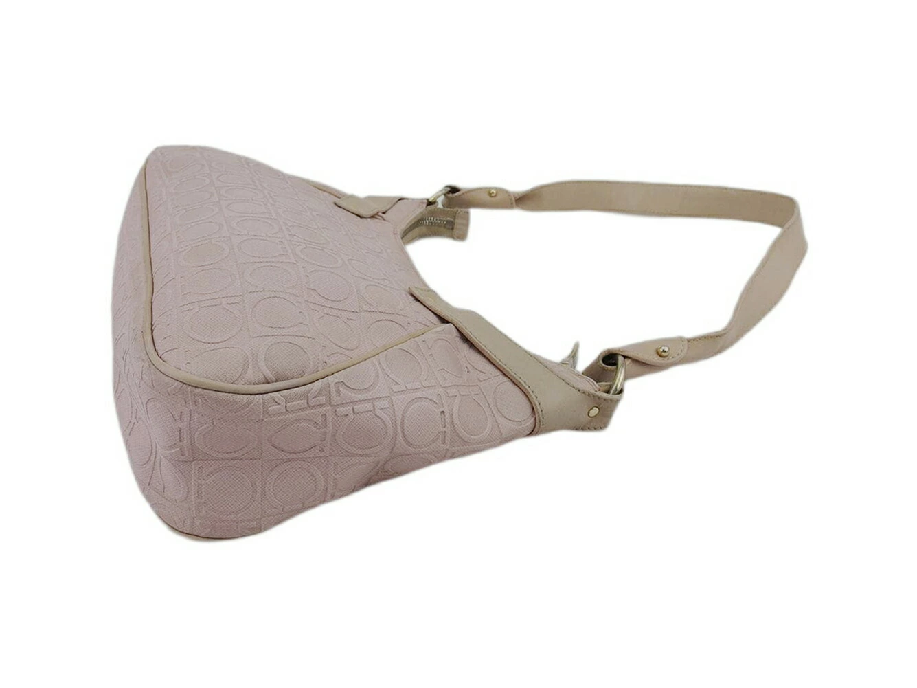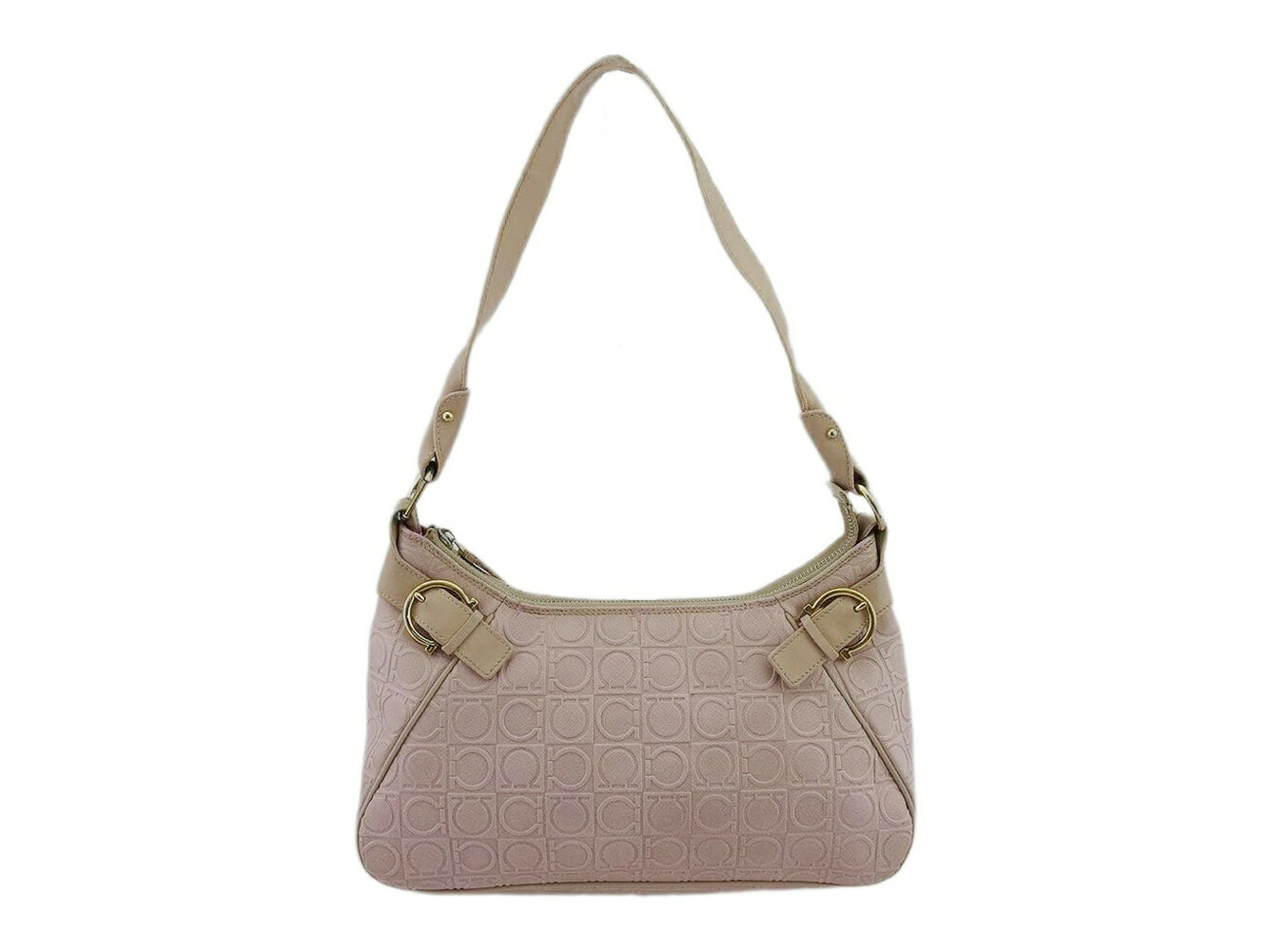 [Rakuten Super Sale ★ Up to 50% Off] Salvatore Ferragamo Gancini Shoulder Bag in Pink, Beige, and Gold. Pre-owned, High-End Vintage.