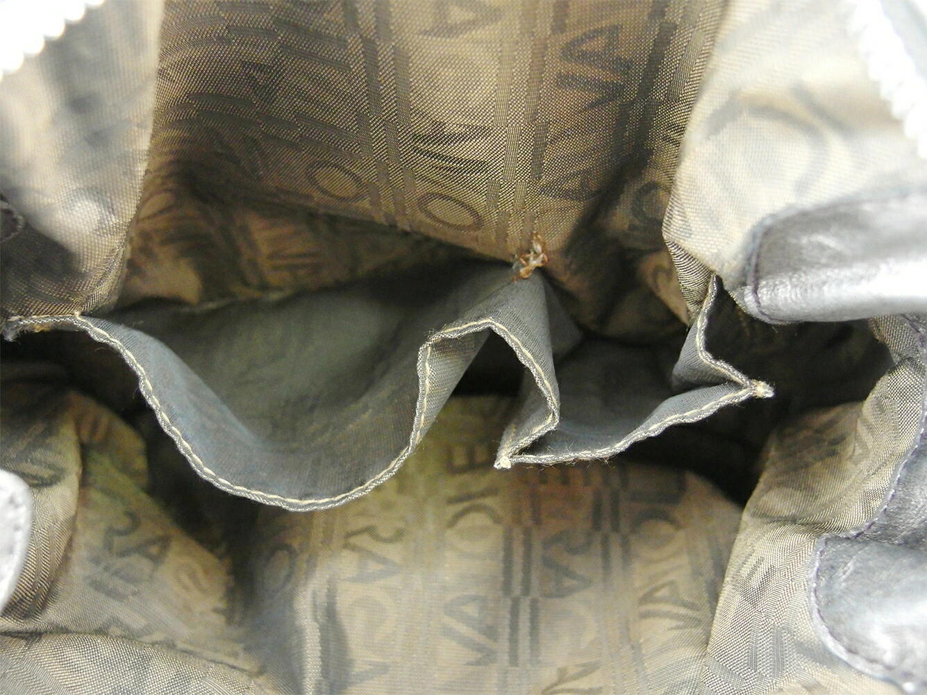 社外リペア跡(スレ色着色)あり。その他 スレ&汚れ(内側もあり) ほつれ(オープンポケット上部) 金具傷 ラメハガレ(小) などの使用感があります。