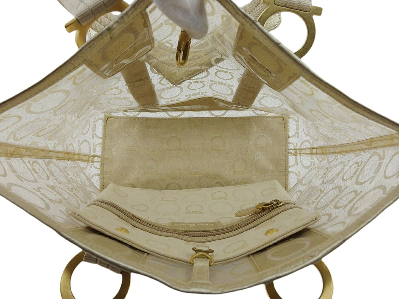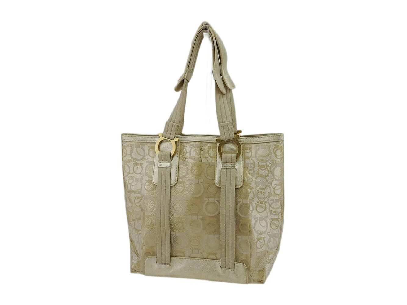 [Rakuten Super Sale ★ Up to 50% Off] Salvatore Ferragamo Gancini Tote Bag in Beige and Gold. Men's. Pre-owned. High-end vintage.
