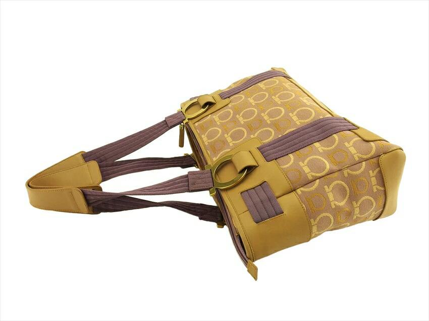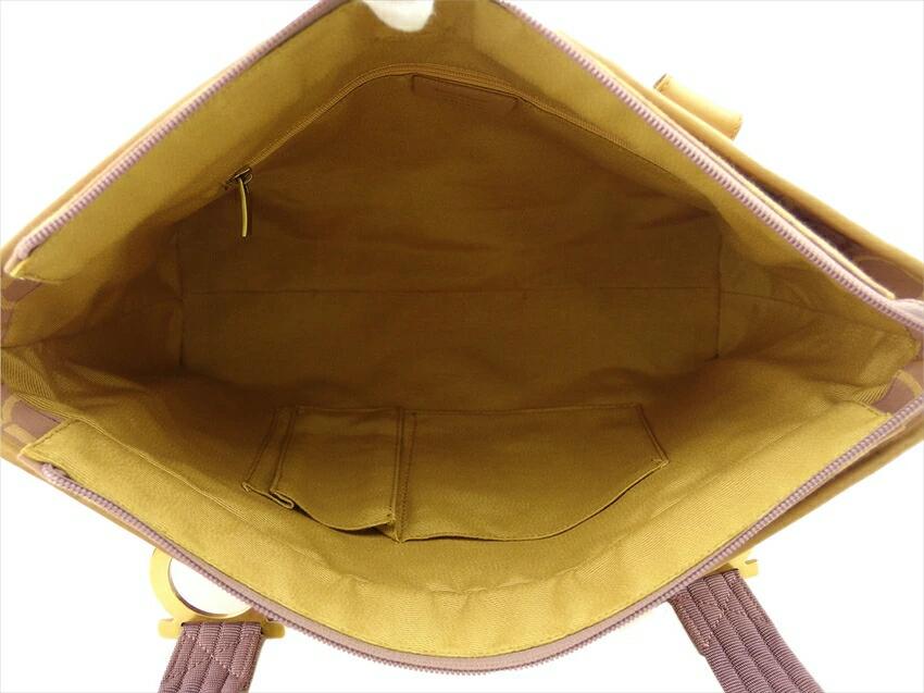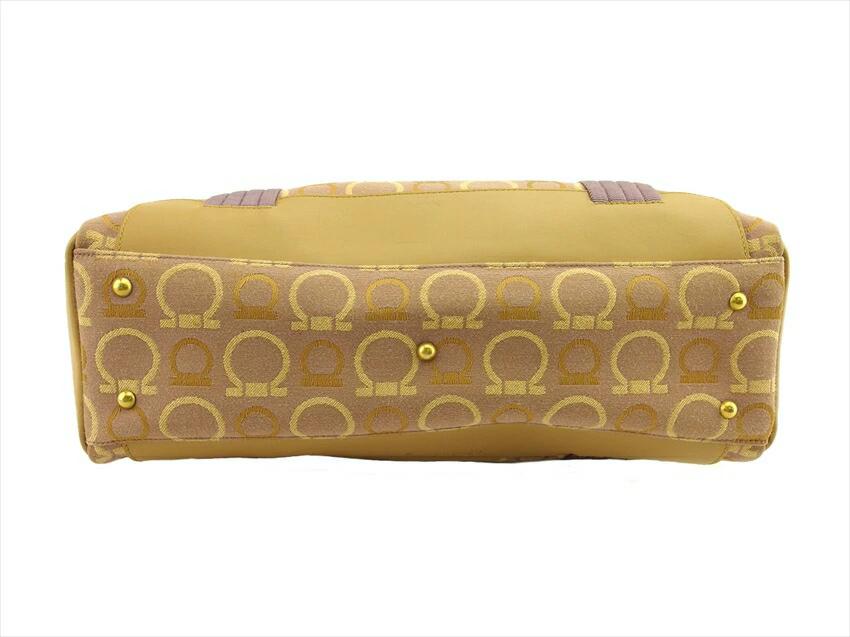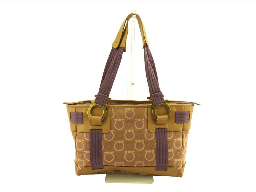 [Rakuten Super Sale ★ Up to 50% Off] Salvatore Ferragamo Gancini Tote Bag in Purple, Beige, and Gold. Pre-owned, Vintage, High-End Brand.
