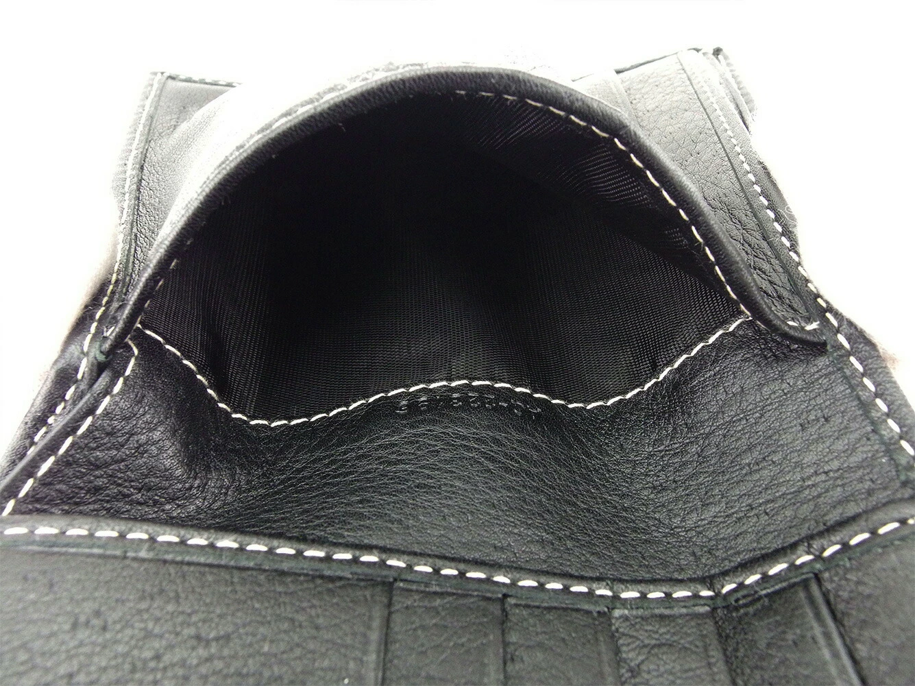 | 備考 | [開口部] ボタンホック [外側] ファスナー式小銭入れ (仕切り×1)×1 [内側] 札入れ×2 カード入れ×10 オープンポケット×2 横幅:約12.2cm 縦幅:約11.3cm 奥行:約2cm〜3cm |