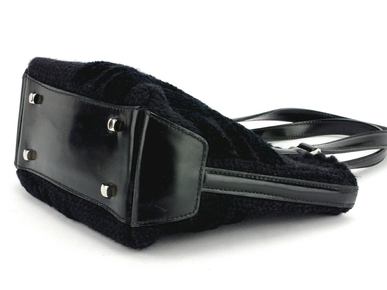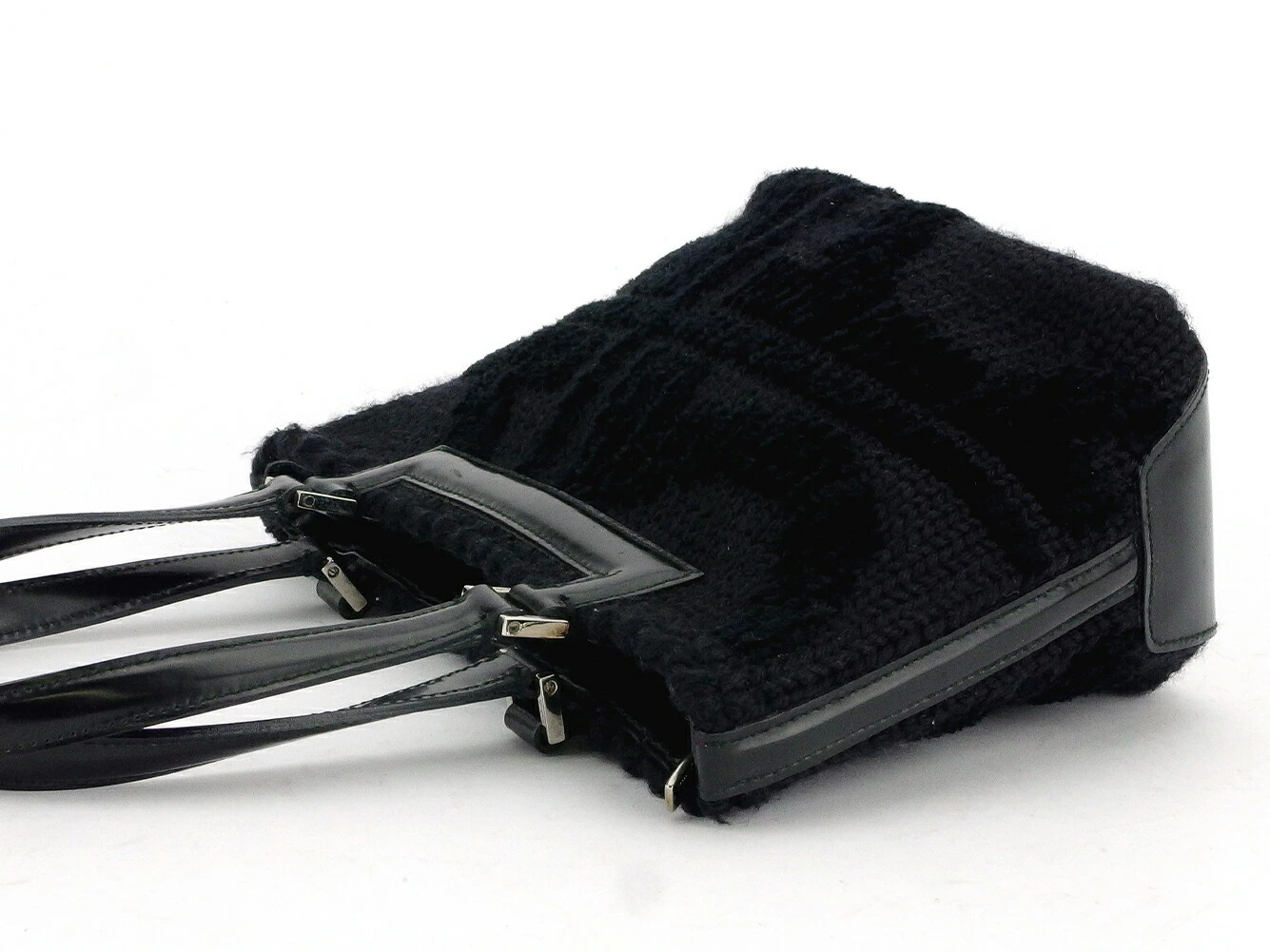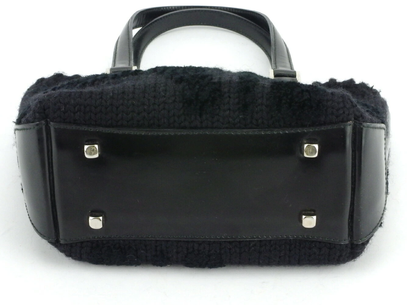 [Rakuten Super Sale ★ Up to 50% Off] Salvatore Ferragamo Handbag, Knit Combination, Black and Silver, Men's, Pre-owned, High-End, Vintage