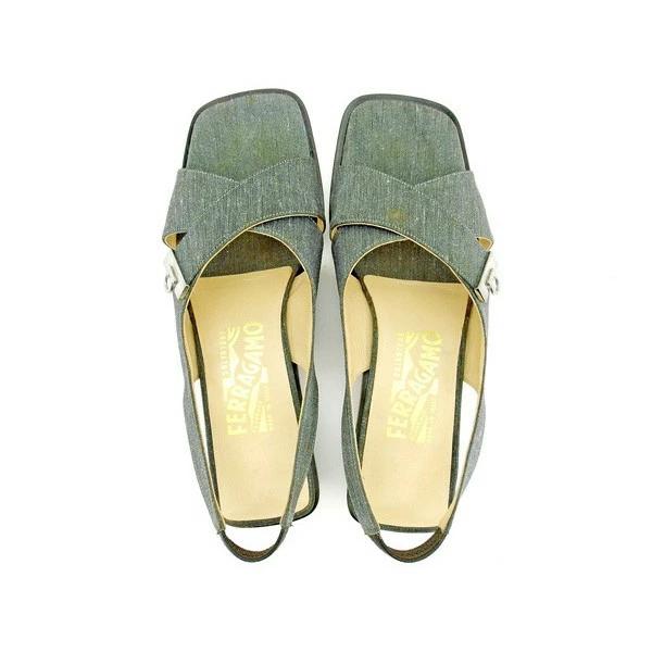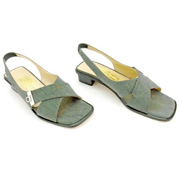 [Rakuten Super Sale ★ Up to 50% Off] Salvatore Ferragamo Sandals with Gancini Hardware, Size 6 Half D, Cross Design, Gray and Silver, Women's, Pre-owned, High-End Brand, Vintage