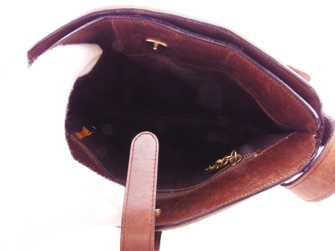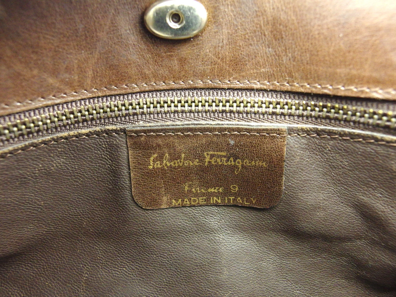 [Rakuten Super Sale ★ Up to 50% Off] Salvatore Ferragamo Shoulder Bag with Logo Plate, Brown and Gold, Women's, Pre-owned, High-End, Vintage
