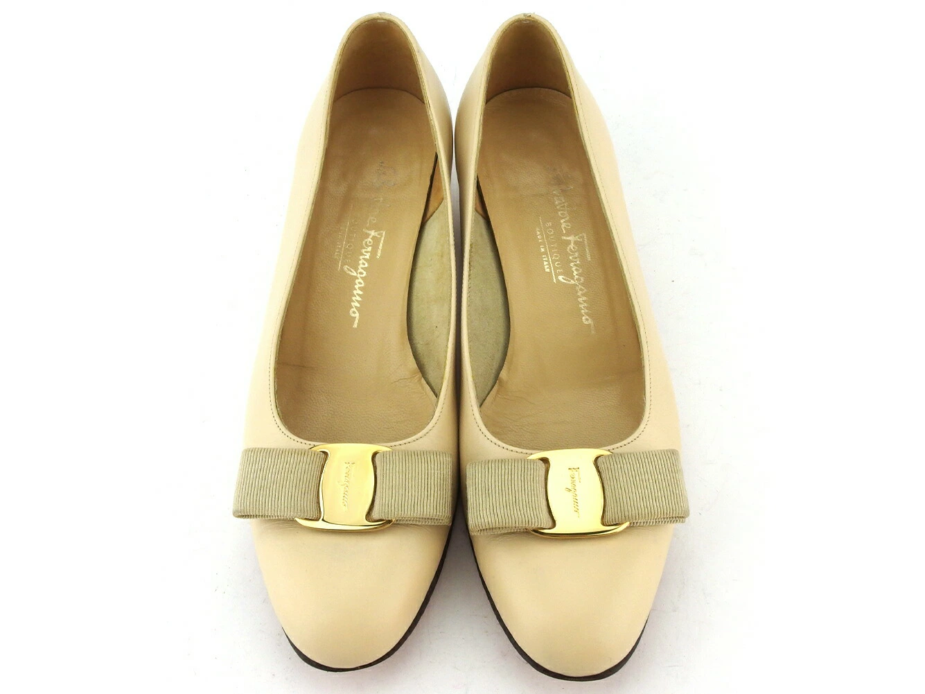 [Rakuten Super Sale ★ Up to 50% Off] Salvatore Ferragamo Vara Ribbon Pumps #6 Beige Men's Pre-owned High-End Vintage