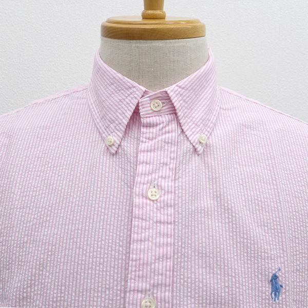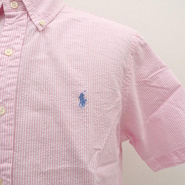 ・メーカー :RALPH LAUREN / ラルフローレン・サイズ :表記サイズ:M,肩幅 (約cm):45,身幅 (約cm):55,着丈 (約cm):81,袖丈 (約cm):25,首周り(約cm):41,・色(柄)の系統:ピンク・デザイン :(メンズ)トップス/カジュアルシャツ・素材 :綿100%