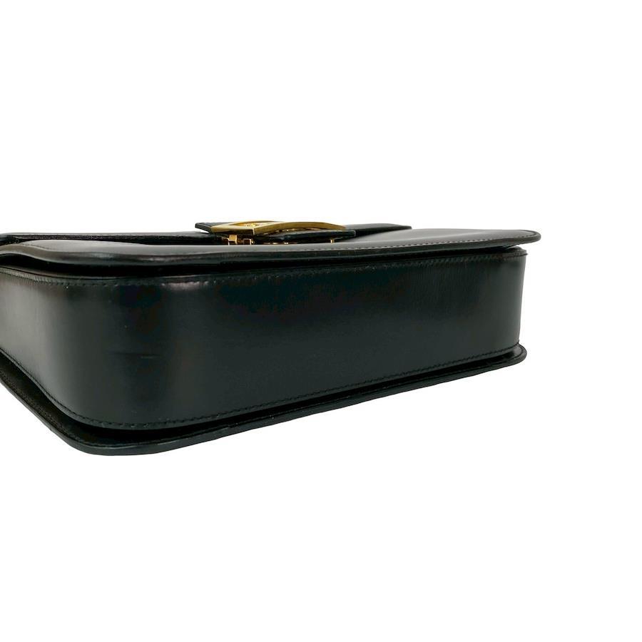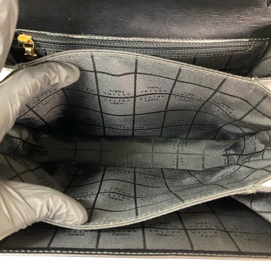 Rare Celine Vintage Logo Carriage Hardware Calfskin Leather Handbag Mini Tote Bag Black 305-4