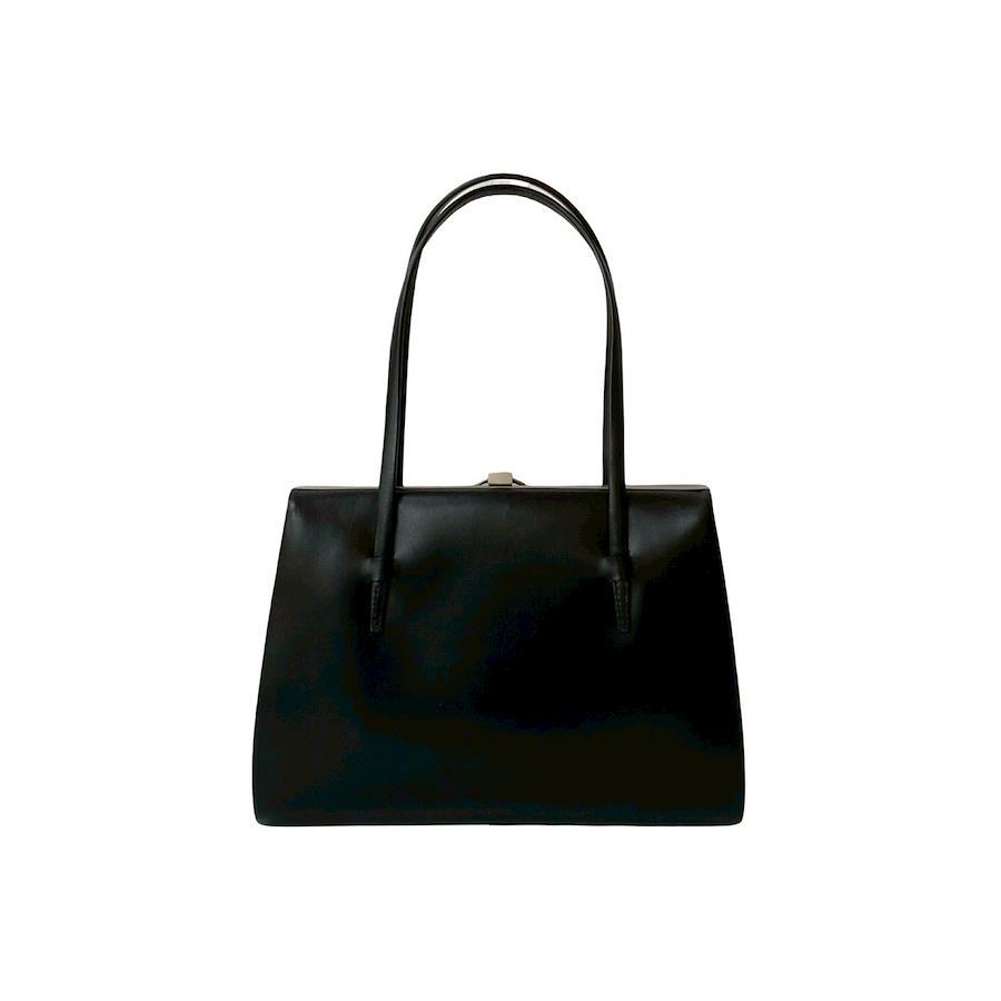 Rare item with pouch: LOEWE genuine calfskin leather clasp mini handbag/tote bag, black and silver, 79970.