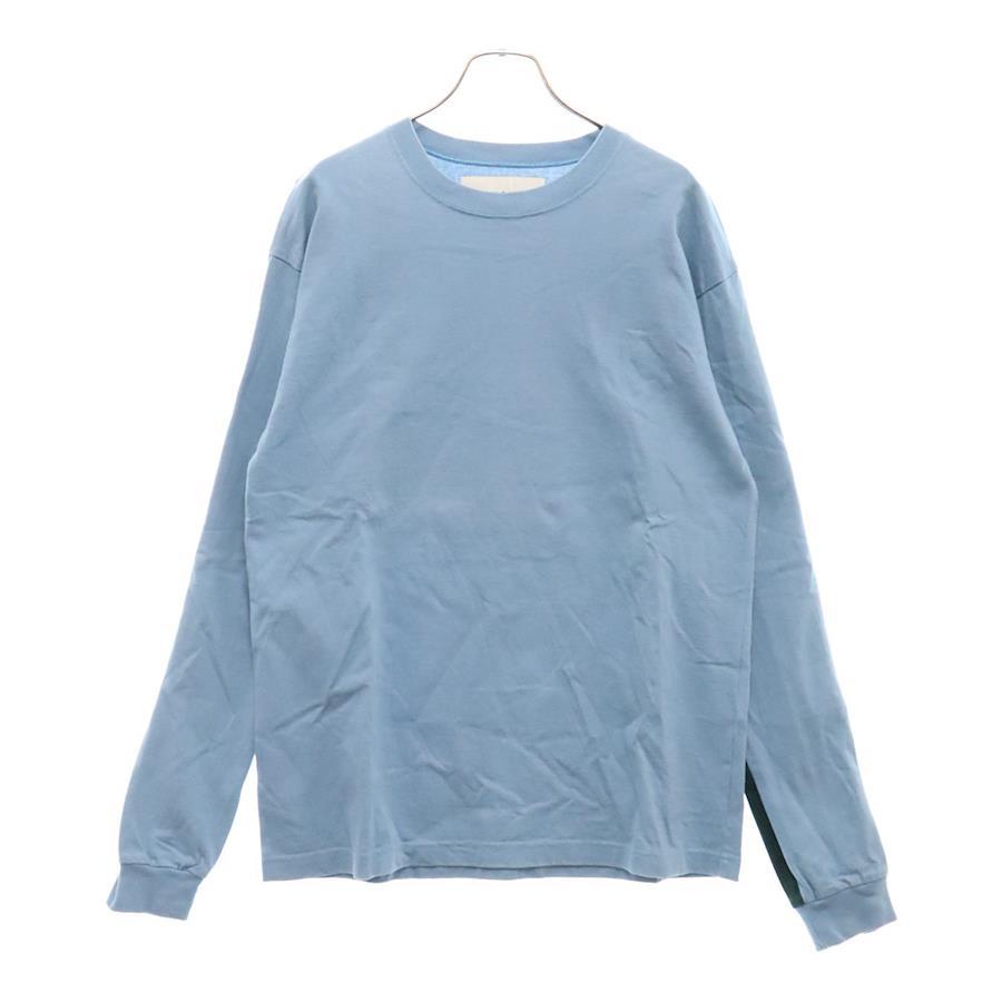 [モデル]異素材切り替え アームデザイン クルーネック ロングスリーブ 長袖Tシャツ カットソー ライトブルー