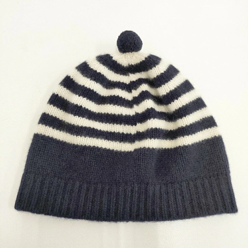 R&D.M.Co. Cashmere Striped Knit Cap with Pom-Pom, Navy and White, Women's, Old Man's Tailor, Pre-owned, 5-1206T
