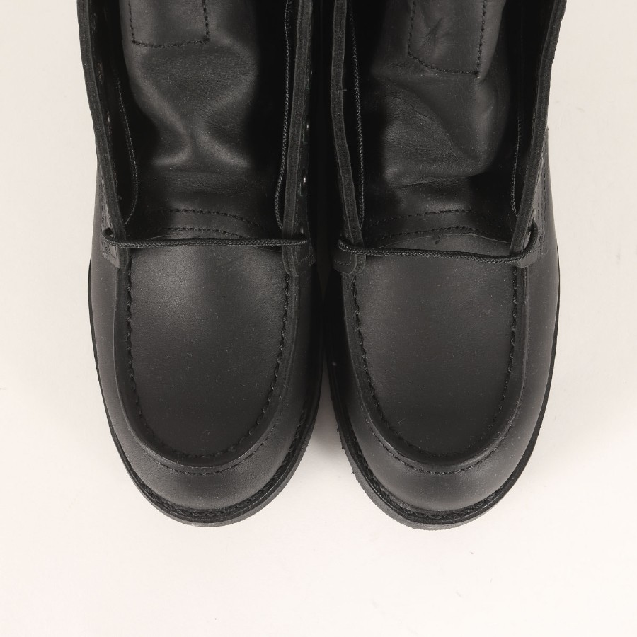 | 商品説明 | ・ブラックハーネスレザー ・モックトゥ ・トラクショントレッドソール ・オールアラウンドグッドイヤーウエルト製法 ・ラスト(木型) 23 ・USA製 |