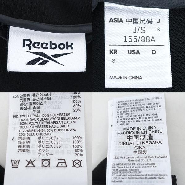 ・メーカー :Reebok / リーボック・サイズ :表記サイズ:S,肩幅 (約cm):36,着丈 (約cm):57,身幅 (約cm):46,・色(柄)の系統:ブラック グレー・デザイン :(メンズ)トップス/ベスト・素材 :表裏、ポリエステル 中綿、ダウン80%フェザー20%