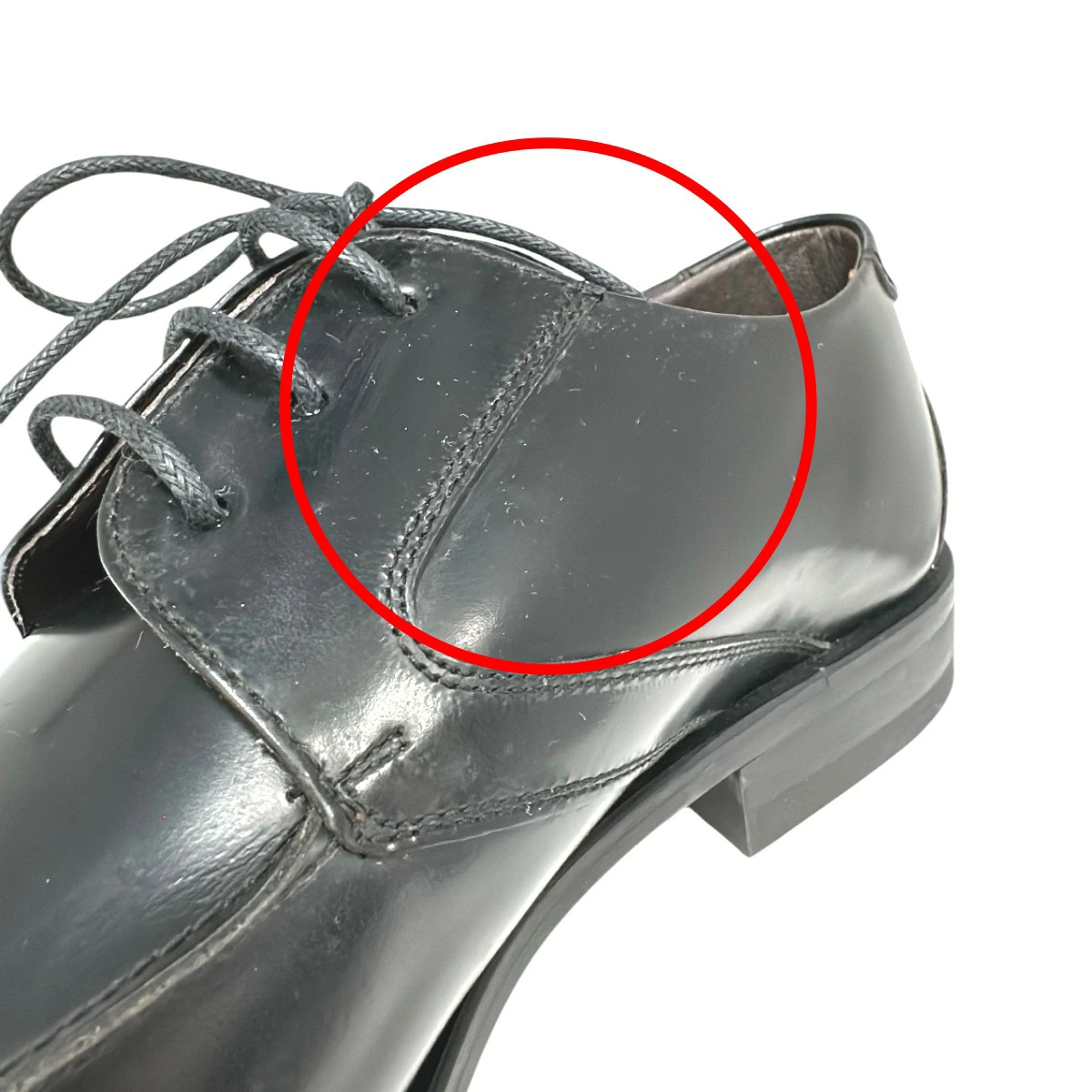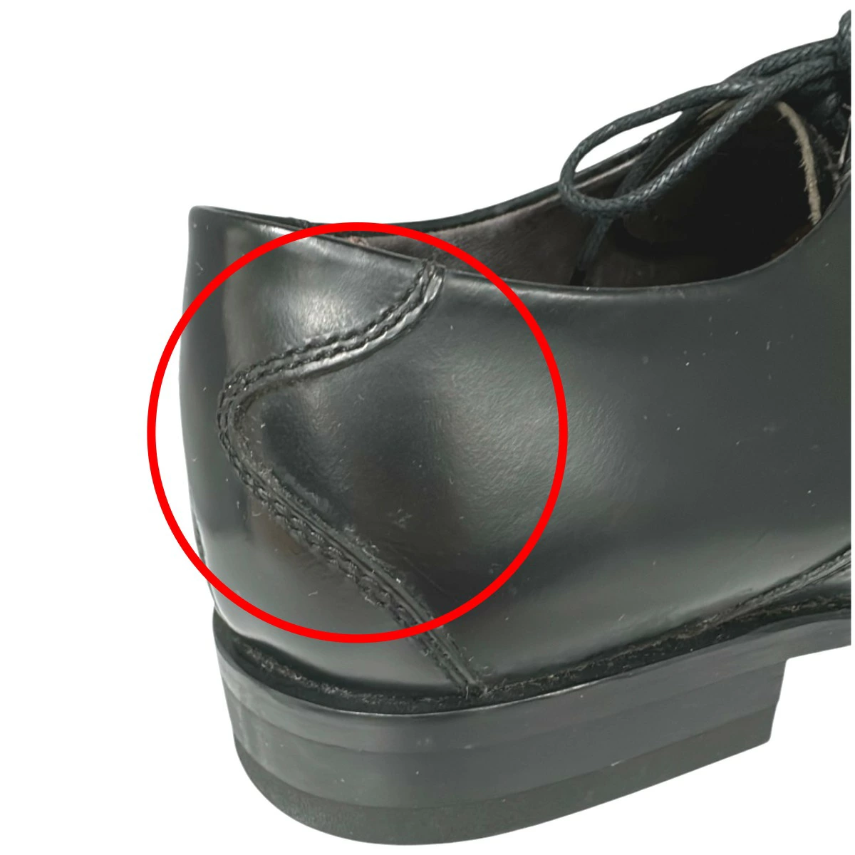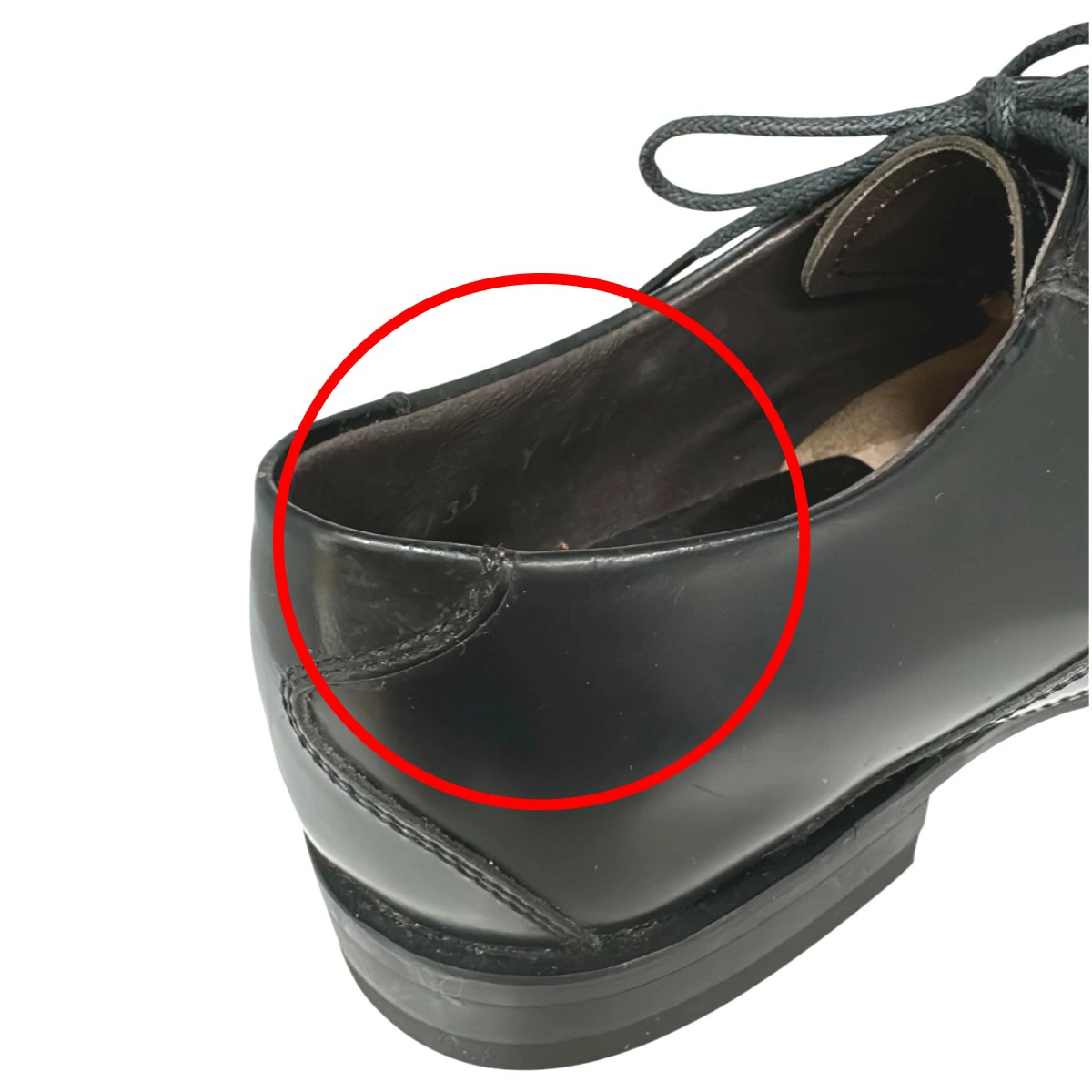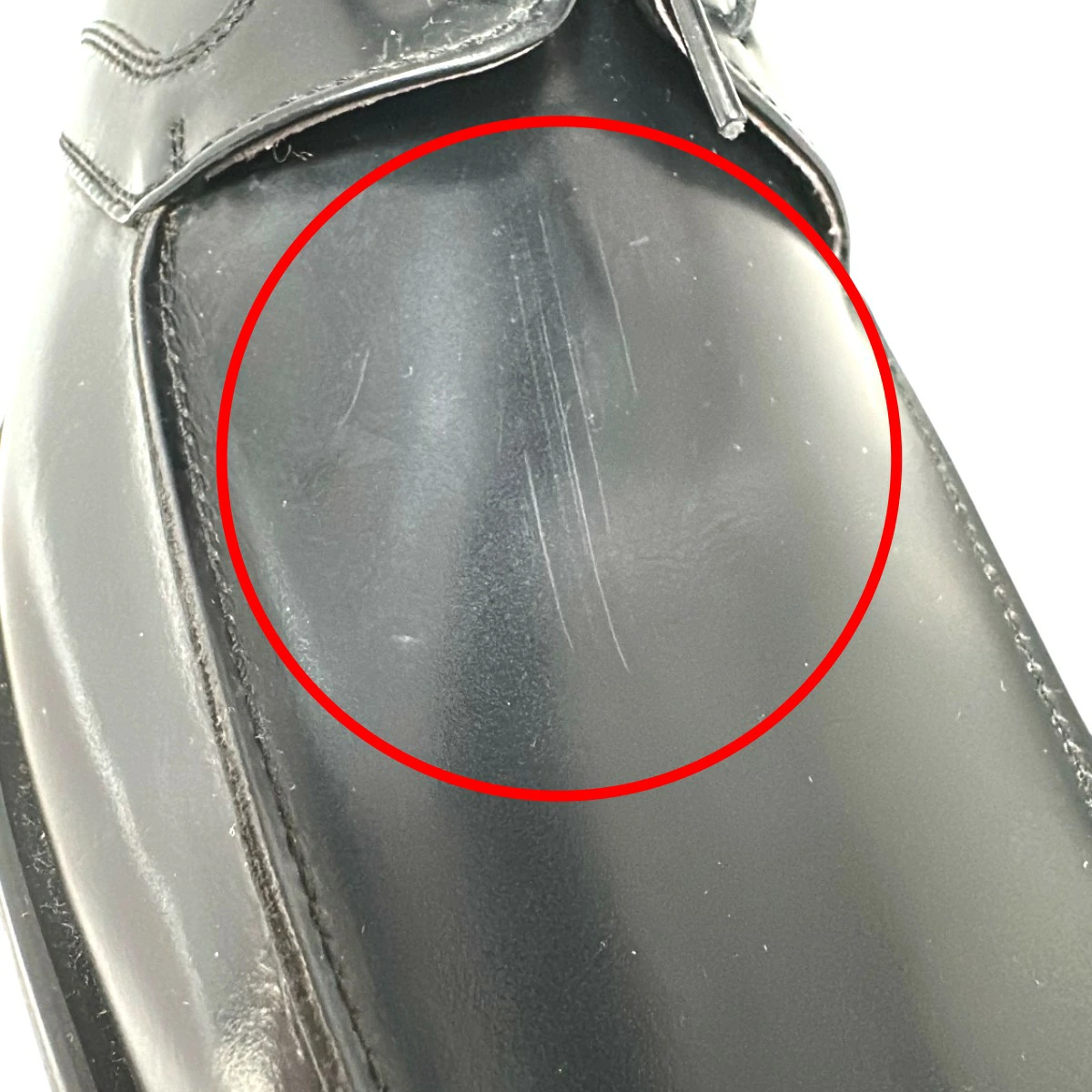 | 外側 | ランク:S 表面:小キズ、汚れ、スレ、凹み 切り替えし部分:スレ コーナー:スレ 表面に小キズあり(画像7~8枚目) 左足内側に凹みあり(画像9枚目) 縫い目部分にスレ・汚れあり(画像10~11枚目) つま先にスレあり(画像12~13枚目) かかと部分にスレあり(画像14~17枚目) 靴底に汚れあり(画像18枚目) |