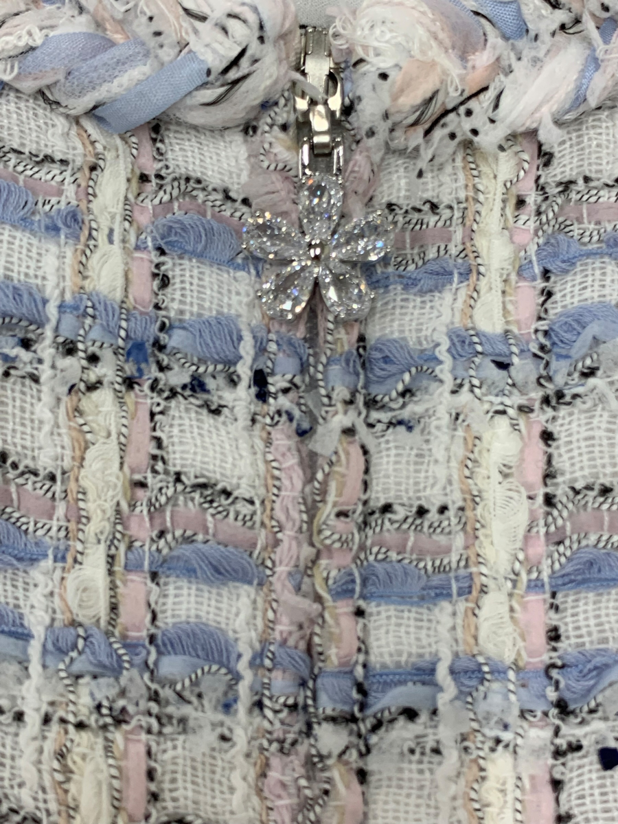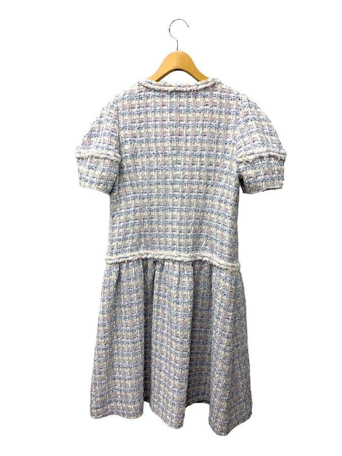 Rene 6316410 Dress Size 36 Blue Tweed Flower Bead Zip-up [Used] IT9XXW956AWI
