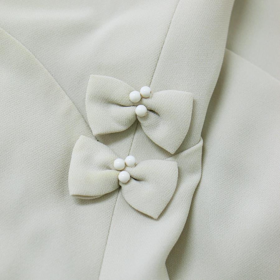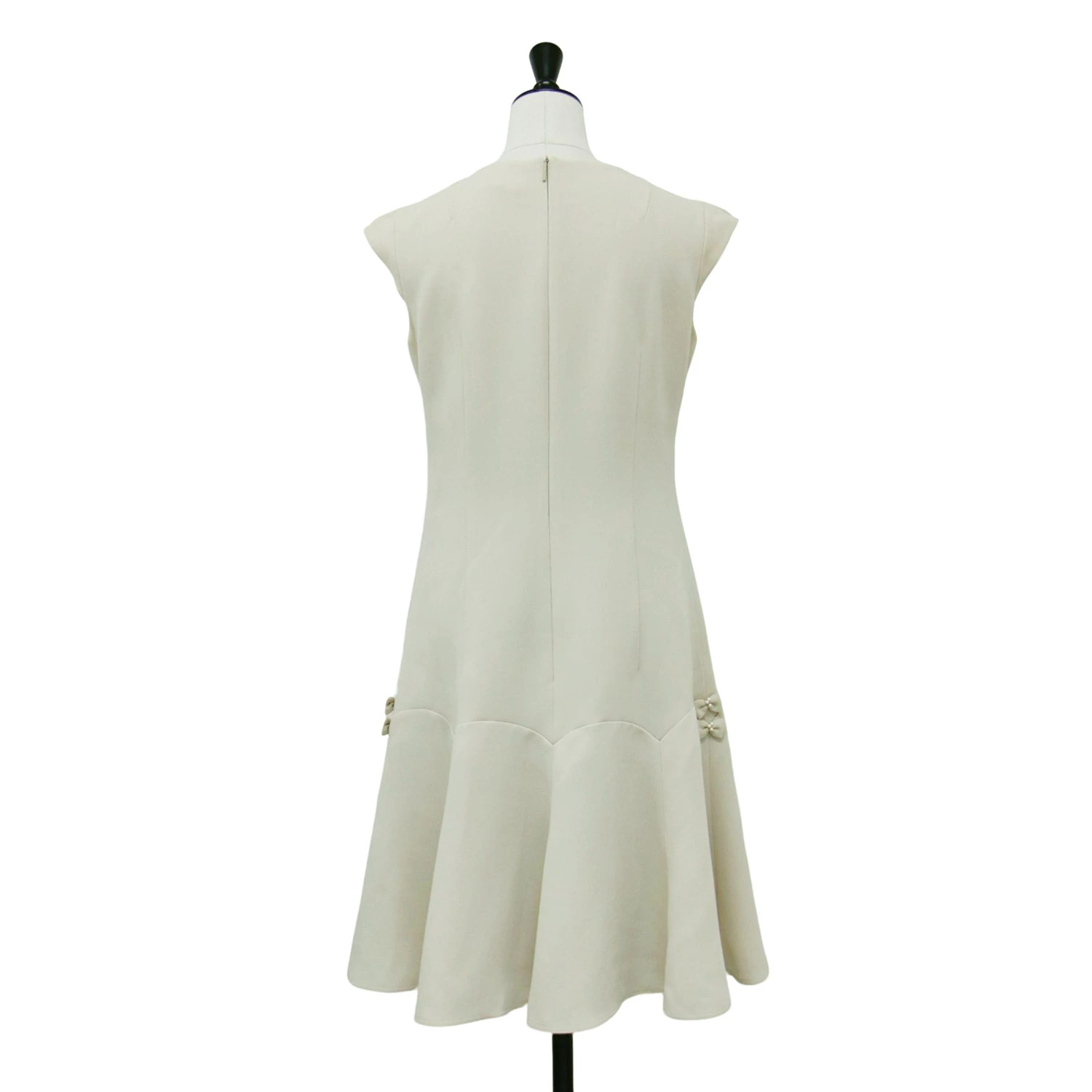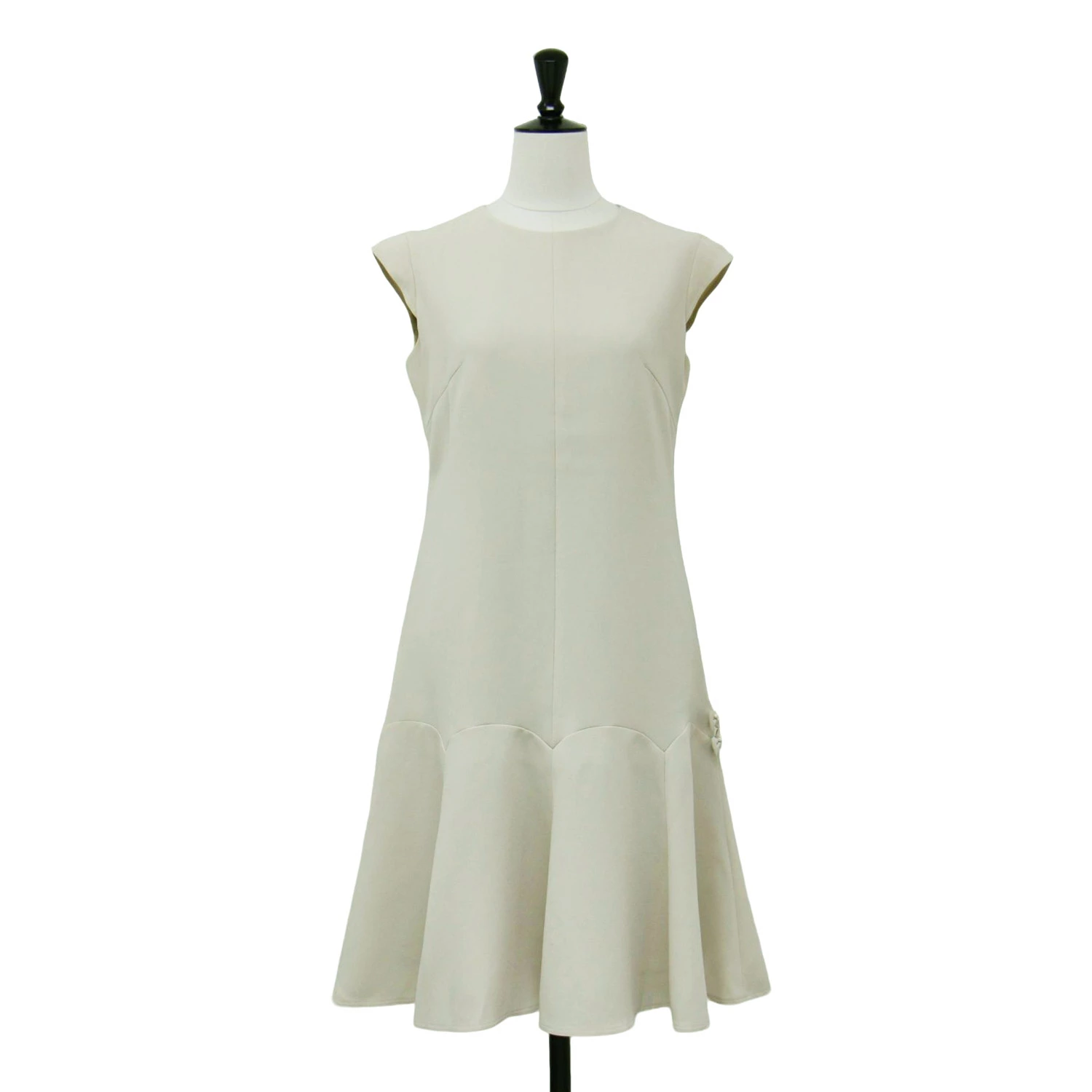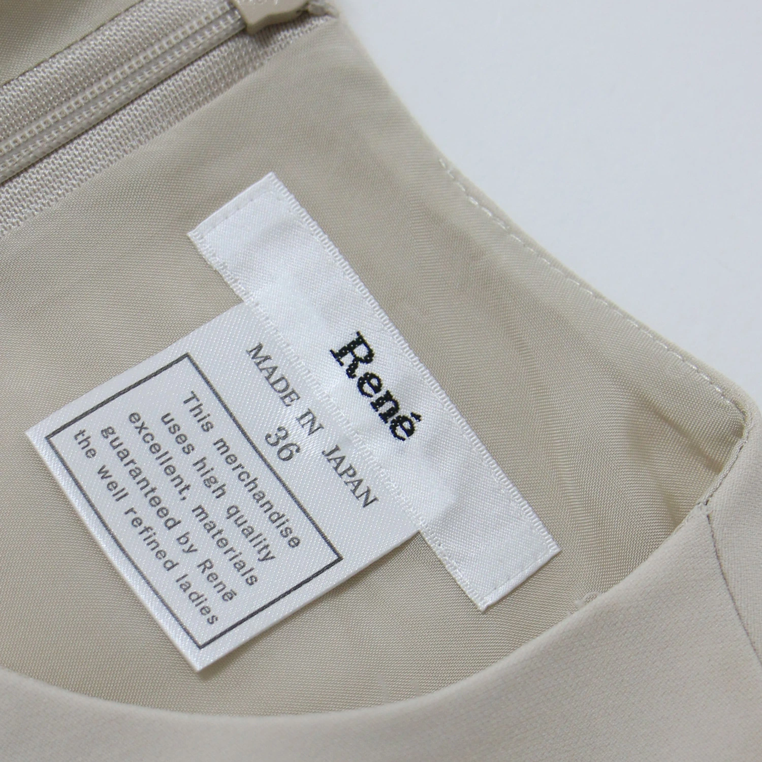 Rene Rene Dress, Beige, Size 36 (S), French Sleeve Midi Dress, Ribbon and Beading, Flared Top, Made in Japan