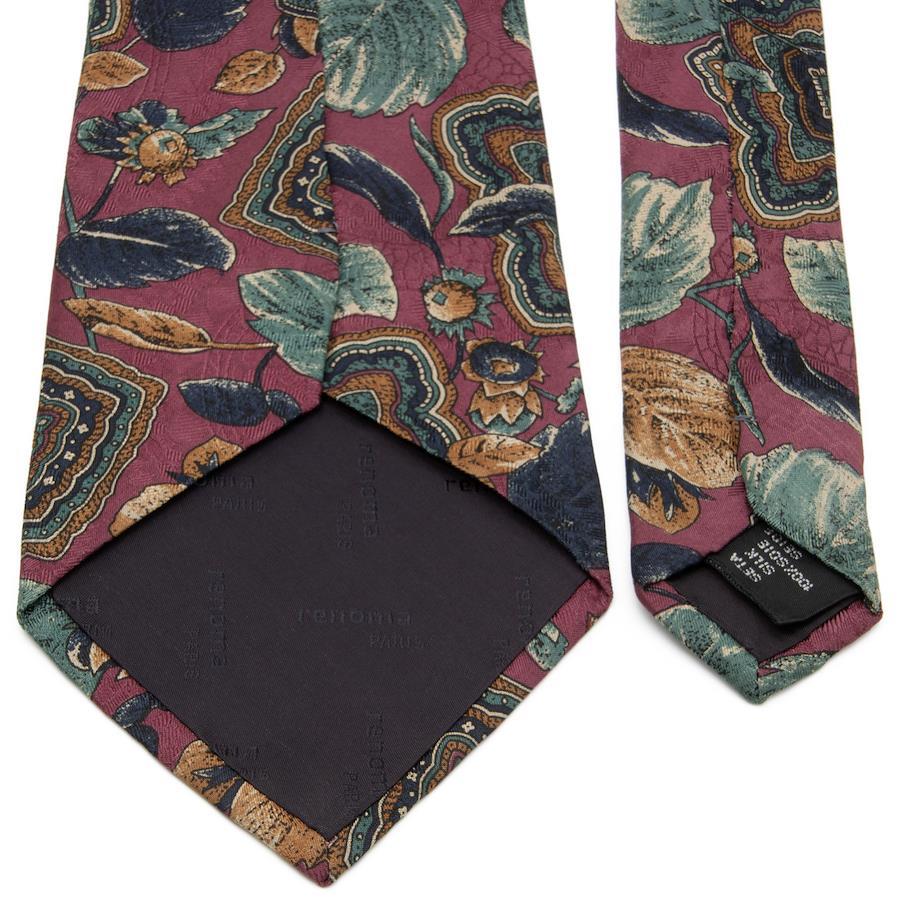 Renoma Necktie, Wide Tie, Printed Tie, Like New, Men's and Women's, Silk, Red, Burgundy, Blue, Navy Blue, Green, Brown, Business, Casual, Leaf, Natural, Brand, Rare, Stylish, Made in Italy, Beautiful, P044