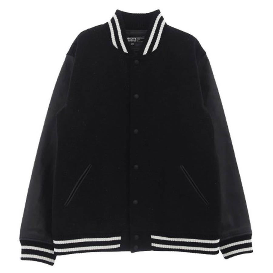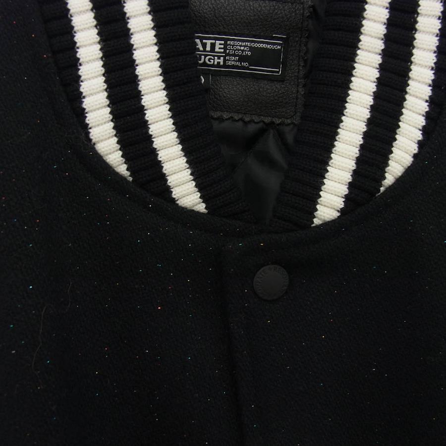ブラック系【モデル】袖レザー ワッペン付きラメ スタジャン