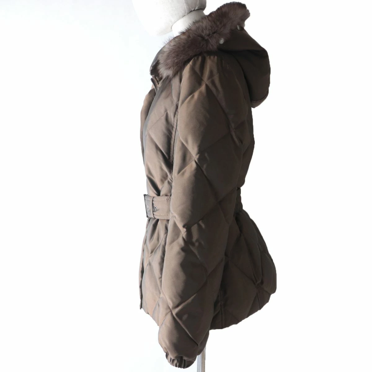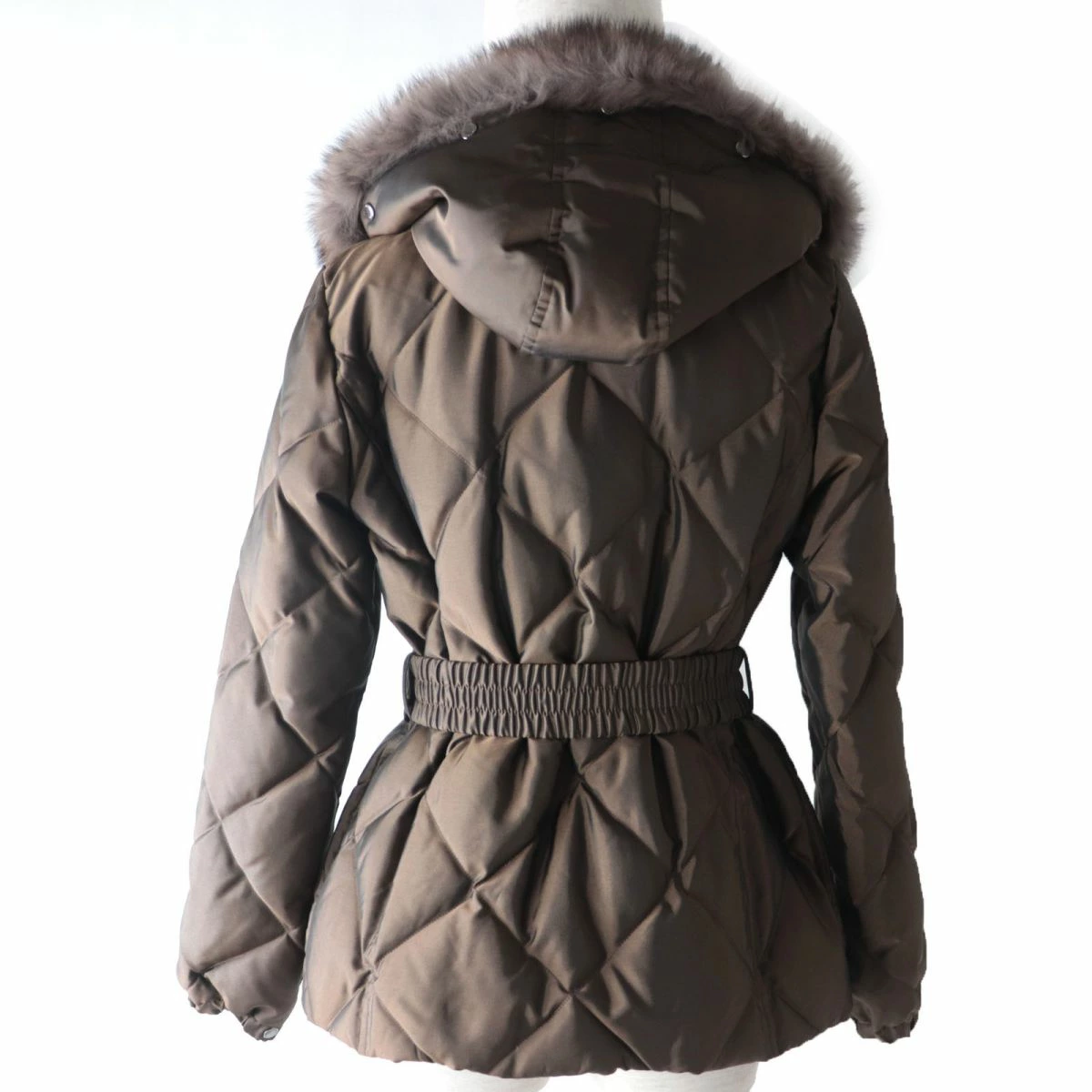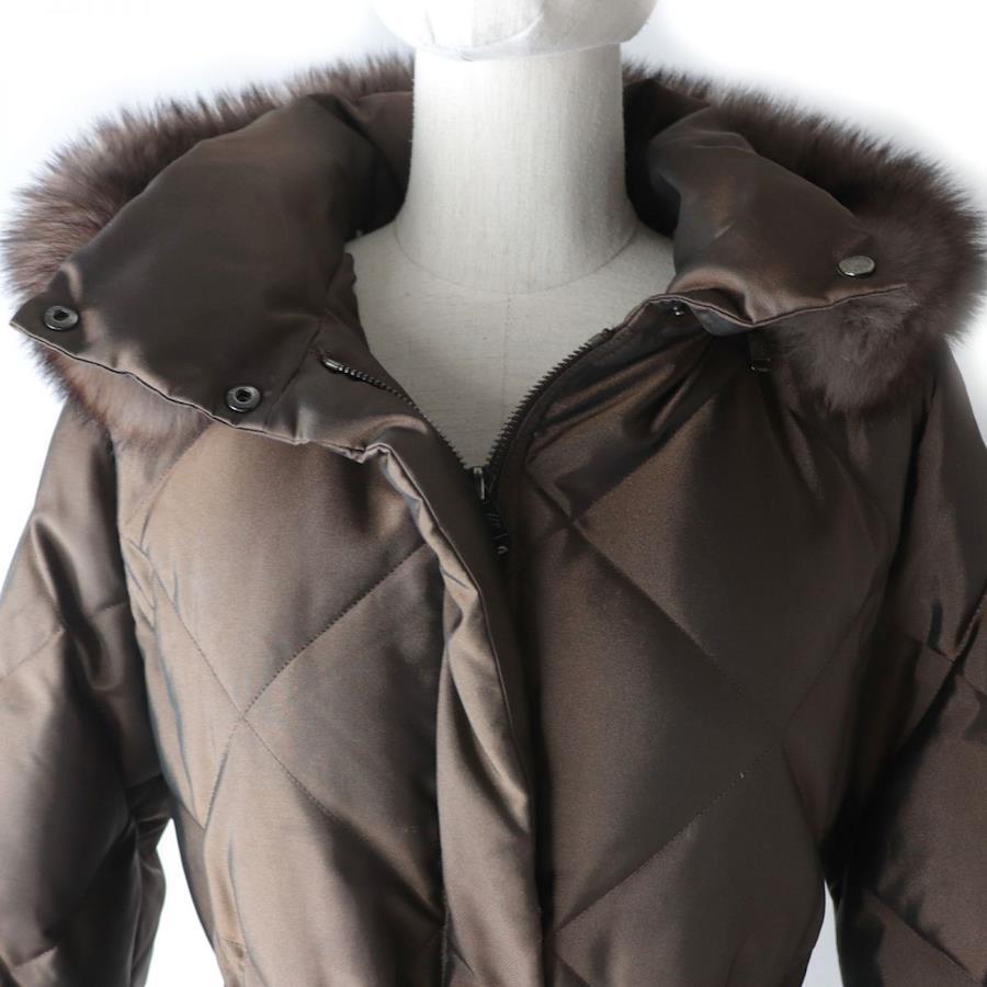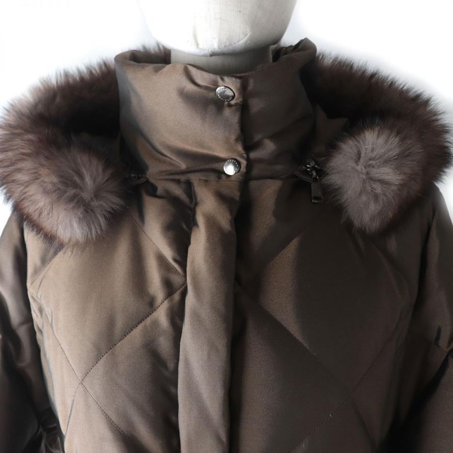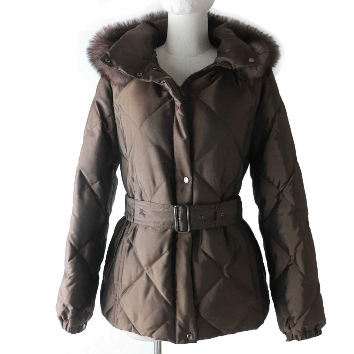 [Reviews galore!] Like-new condition ☆ Authentic Burberry London FS032-931-55 Belted, Blue Fox Fur, and Hooded Quilted Down Coat, Brown, Size 38 [Pre-owned]