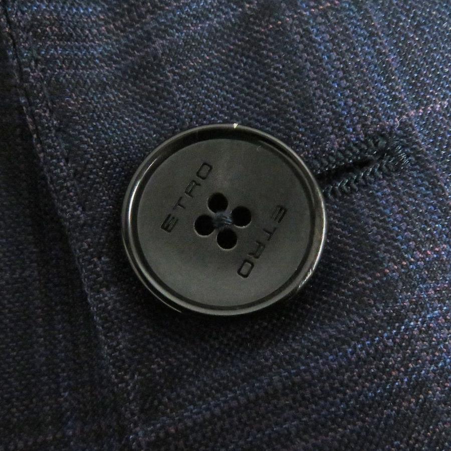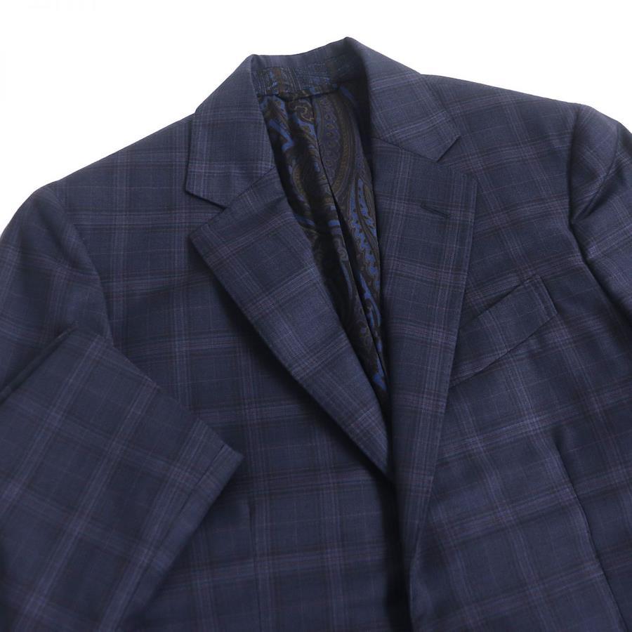 [Reviews galore!] Like-new condition 19AW ETRO tartan check, paisley lining, logo buttons, wool single-breasted suit, navy, size 44, made in Italy, authentic, pre-owned