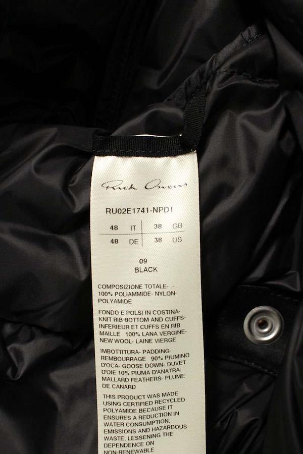 素材:(表地) ナイロン (中綿) ダウン90%、フェザー10% (リブ部分) ウール