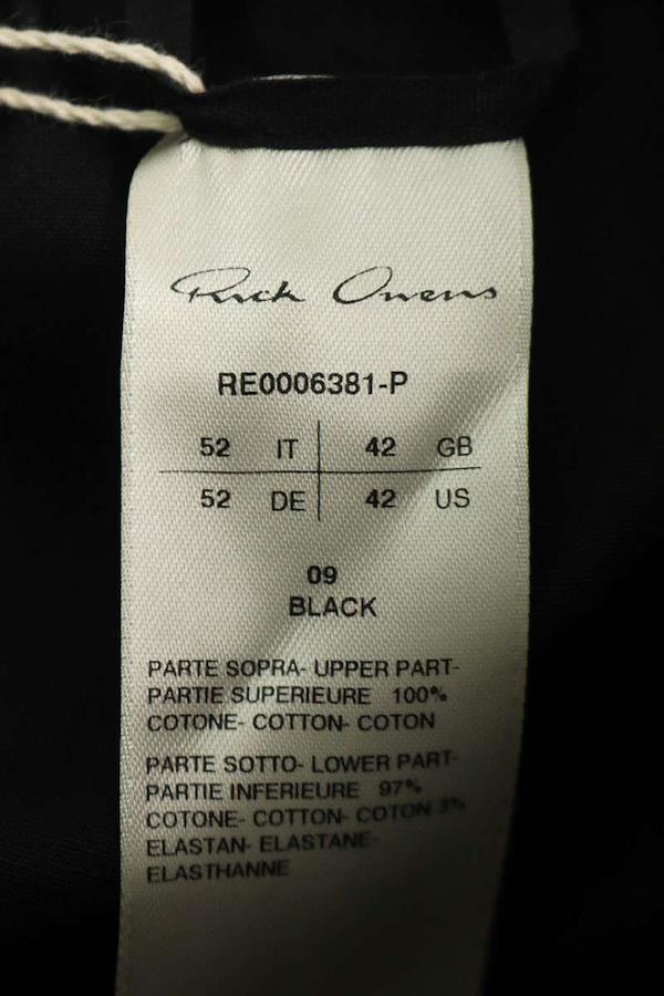 ランク:A (使用感が少ない商品)状態備考:-ブランド:リックオウエンスサイズ:52色:ブラック実寸:ウエスト幅42.5cm 股上52cm ワタリ幅35.5cm 股下83.5cm 裾幅34.5cm重さ:-素材:(本体) コットン (別布) コットン97%、エラスタン3%付属品:タグありその他特徴:ボタンフライデザインです管理番号:10829-241018-0032