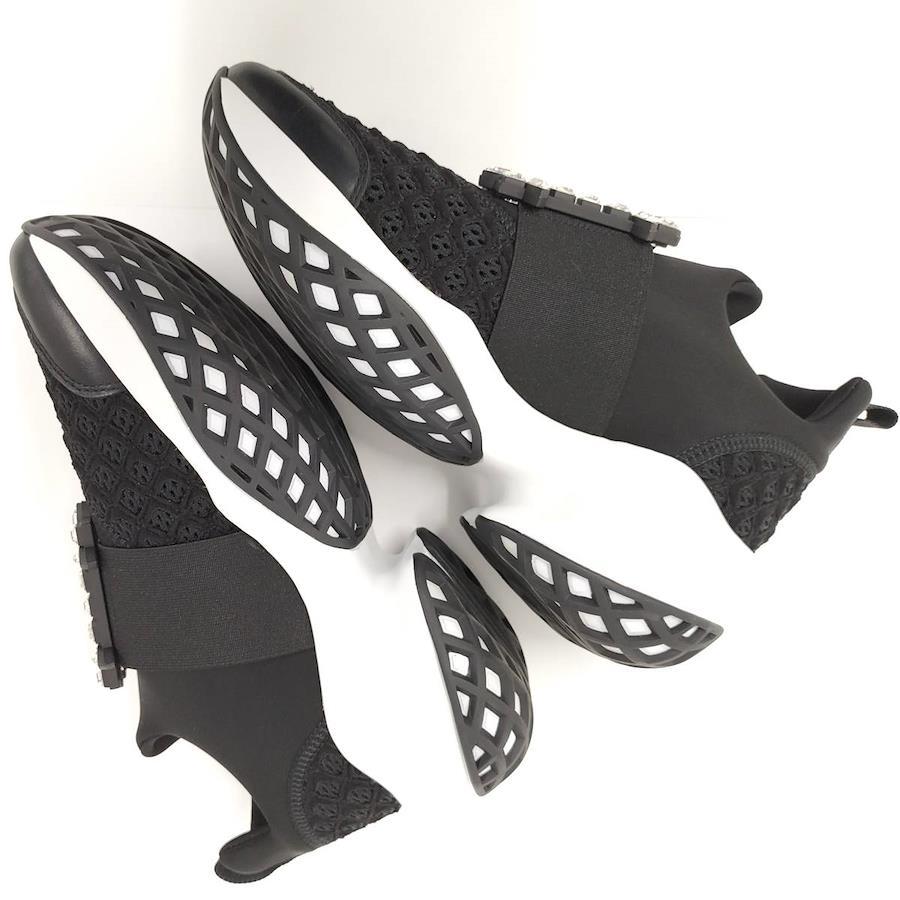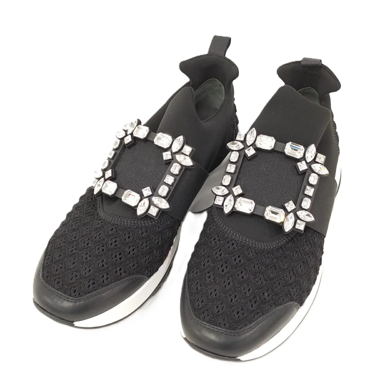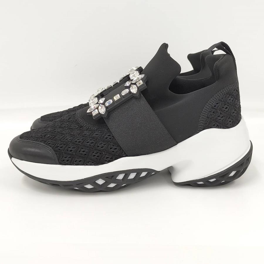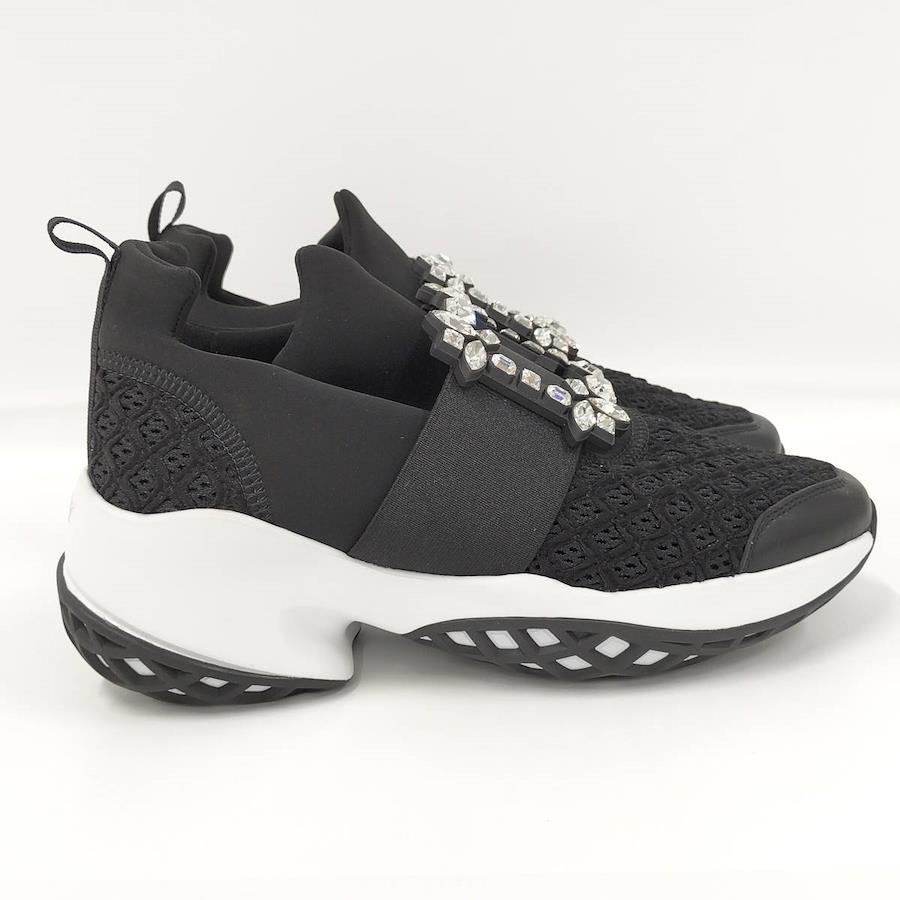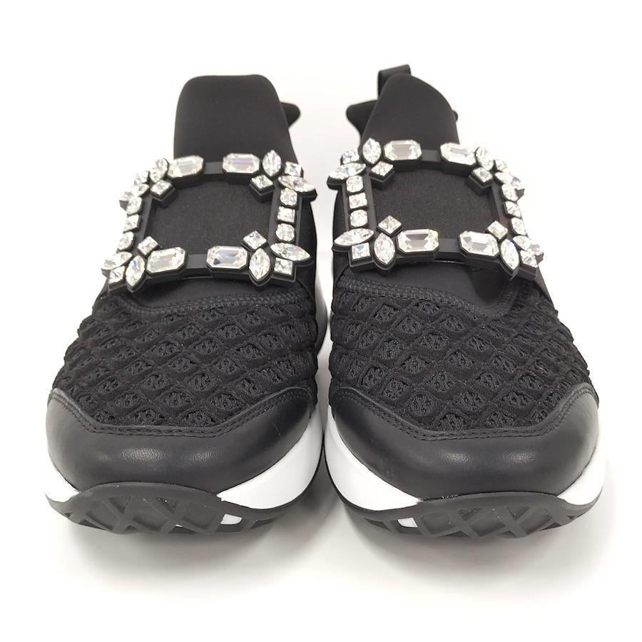 Roger Vivier Vive Run Strass Buckle Sneakers in Black Fabric, Size 37