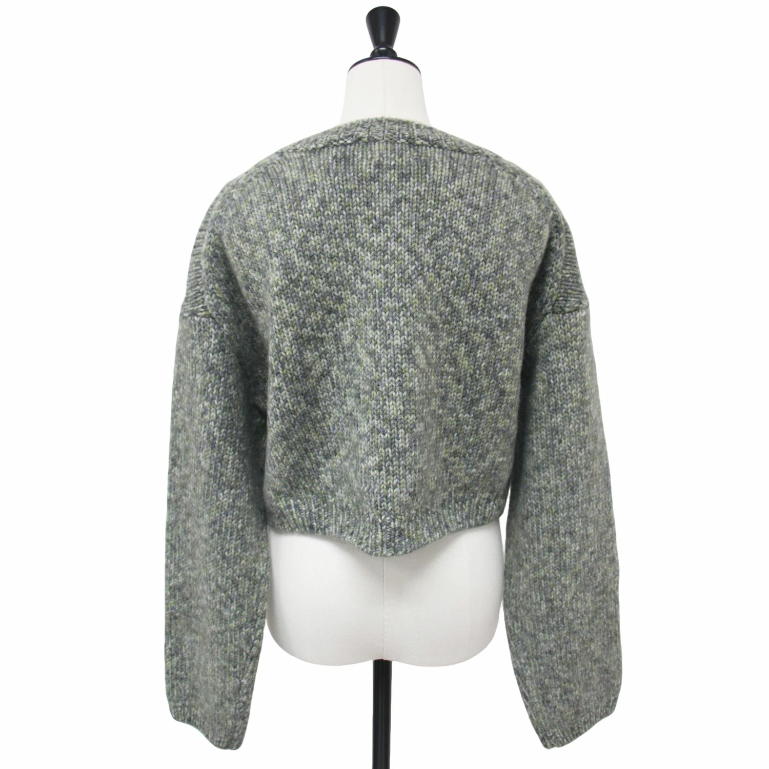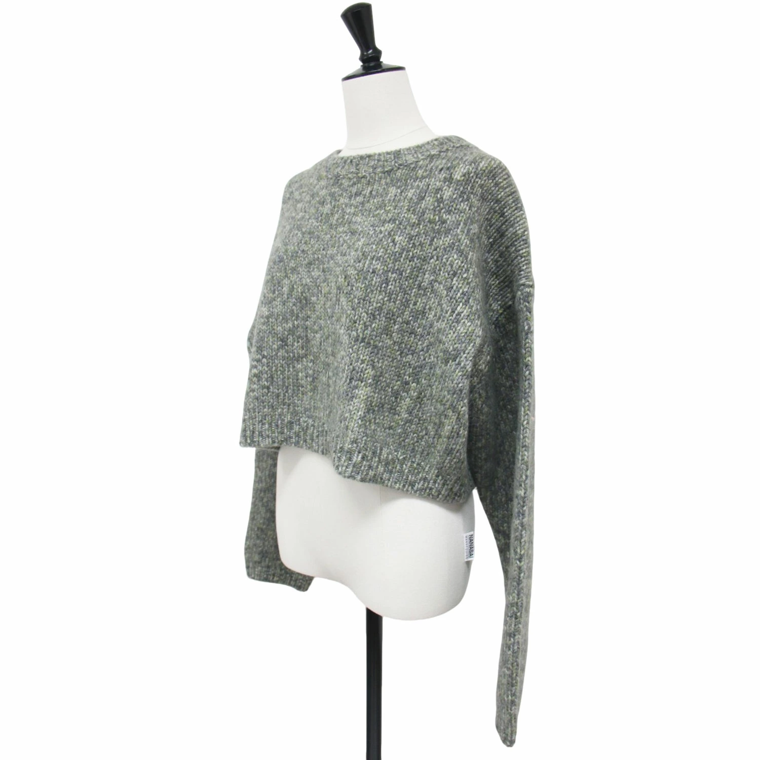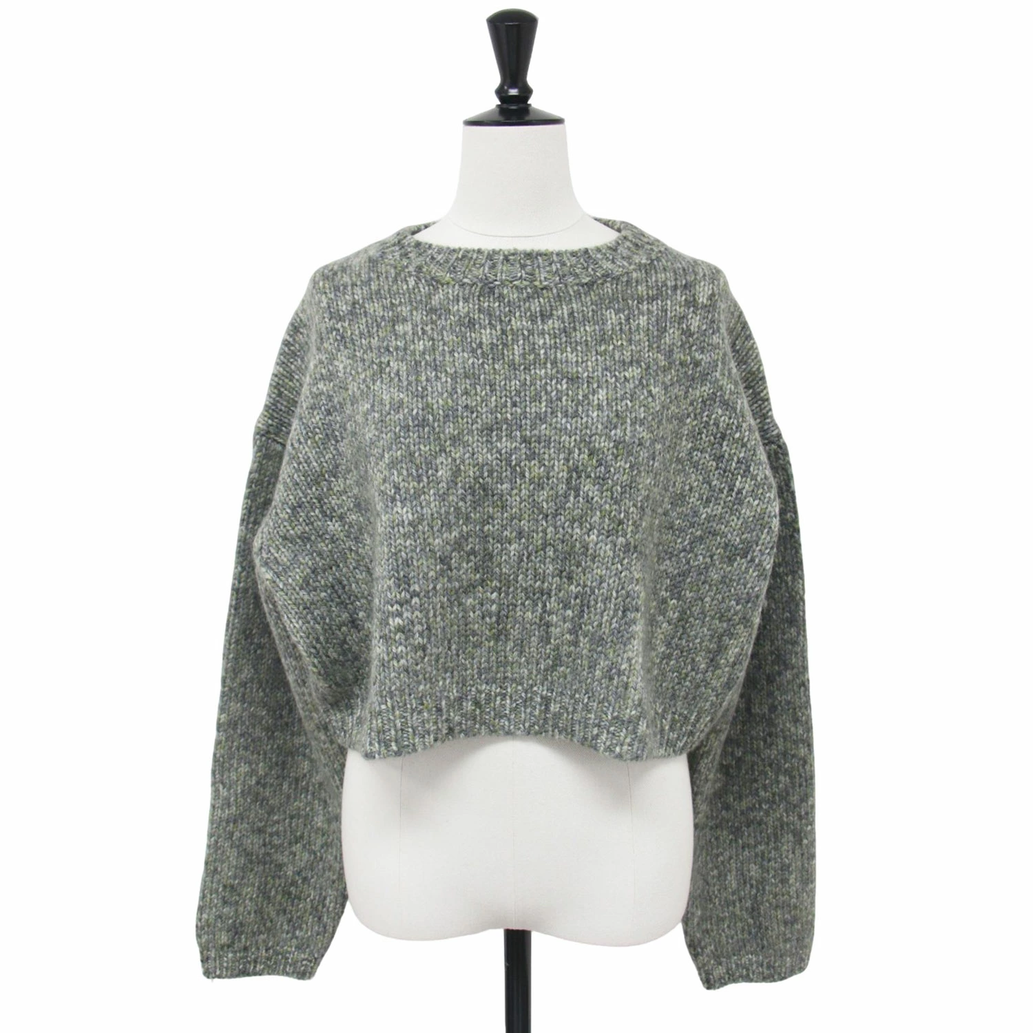 ROKU BEAUTY&YOUTH Knitwear, Gray, Size: Free, Fall/Winter 2024, Wool, Yarn Print, Knit, Long Sleeve, Crew Neck, Short Length, Pullover Top, Women's, Pre-owned, Excellent Condition, K4616