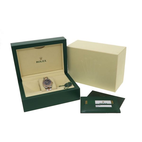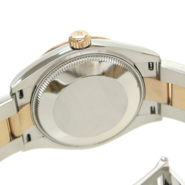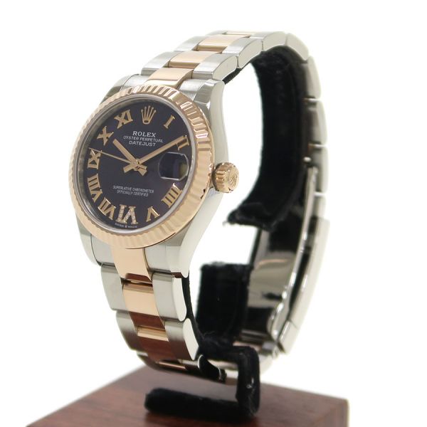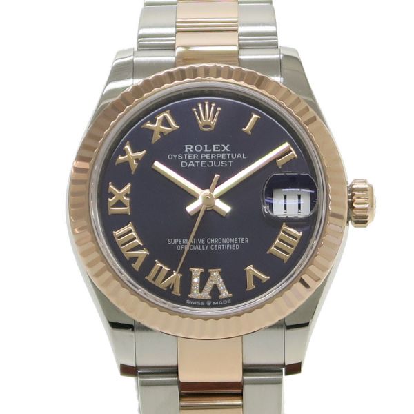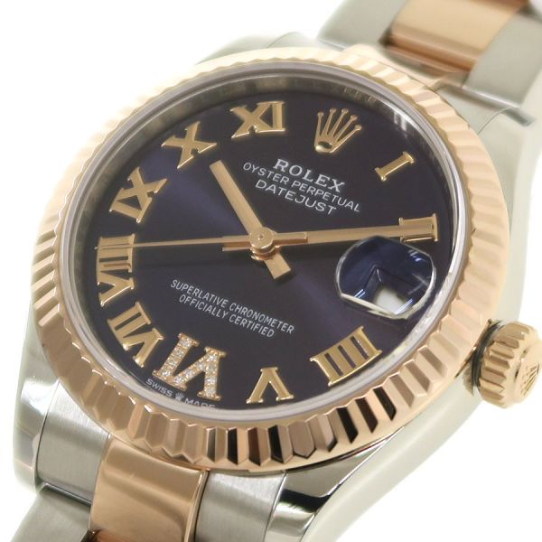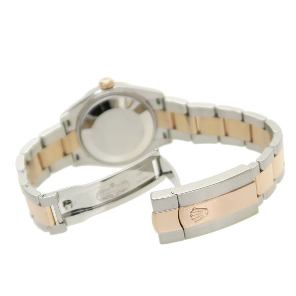 Ref.278271 ランダム番ステンレスとエバーローズゴールドコンビのデイトジャスト31が入荷しました。人気の高いオーベルジーヌダイヤルの6時位置インデックスにダイヤモンドを散りばめた可愛らしさの中にも高級感漂う組み合わせです。自社製自動巻きキャリバー2236を搭載し、ロレックスが特許を取得した高精度なシリコン製シロキシ・ヘアスプリングを採用しております。当社提携時計工房にて外装仕上げと機械点検を行っております。ベゼル、裏蓋に微かな小傷スレはございます。
