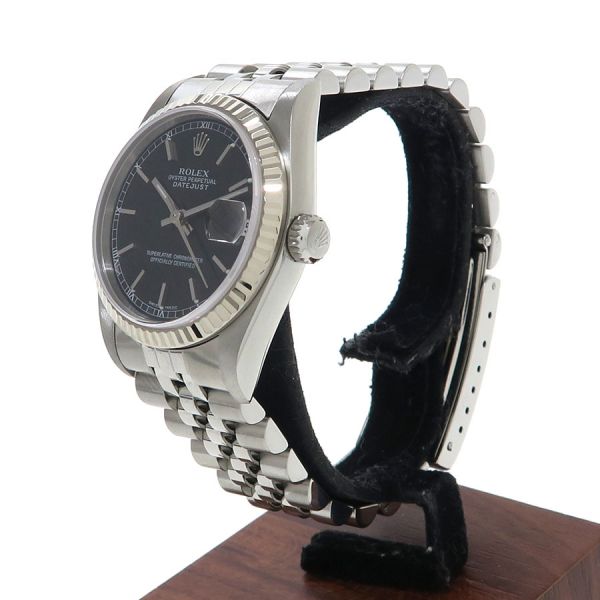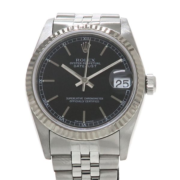 Ref.78274 Y番 2002年頃製 ベゼル部分のみにホワイトゴールドを使用したボーイズサイズ・デイトジャストが入荷致しました。幅広いシーンでお使い頂ける人気の高い黒文字盤になります。31mmケースになりますので少し大振りなモデルをお探しの女性の方にもオススメです。当社提携の時計修理工房にて外装の新品仕上げと内部調整を行っております。裏蓋に取りきれない小傷、スレはございます。