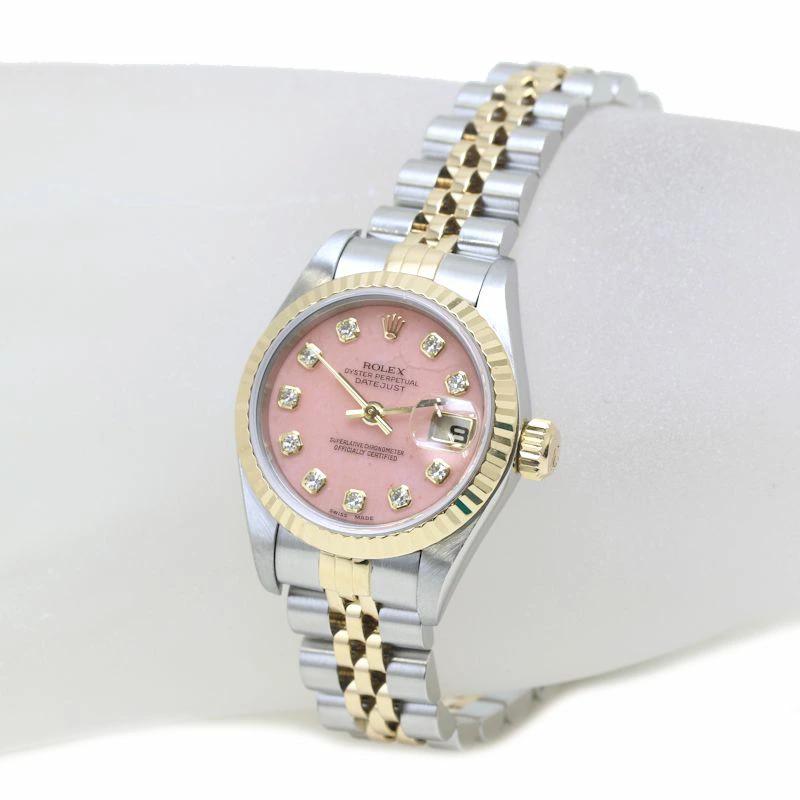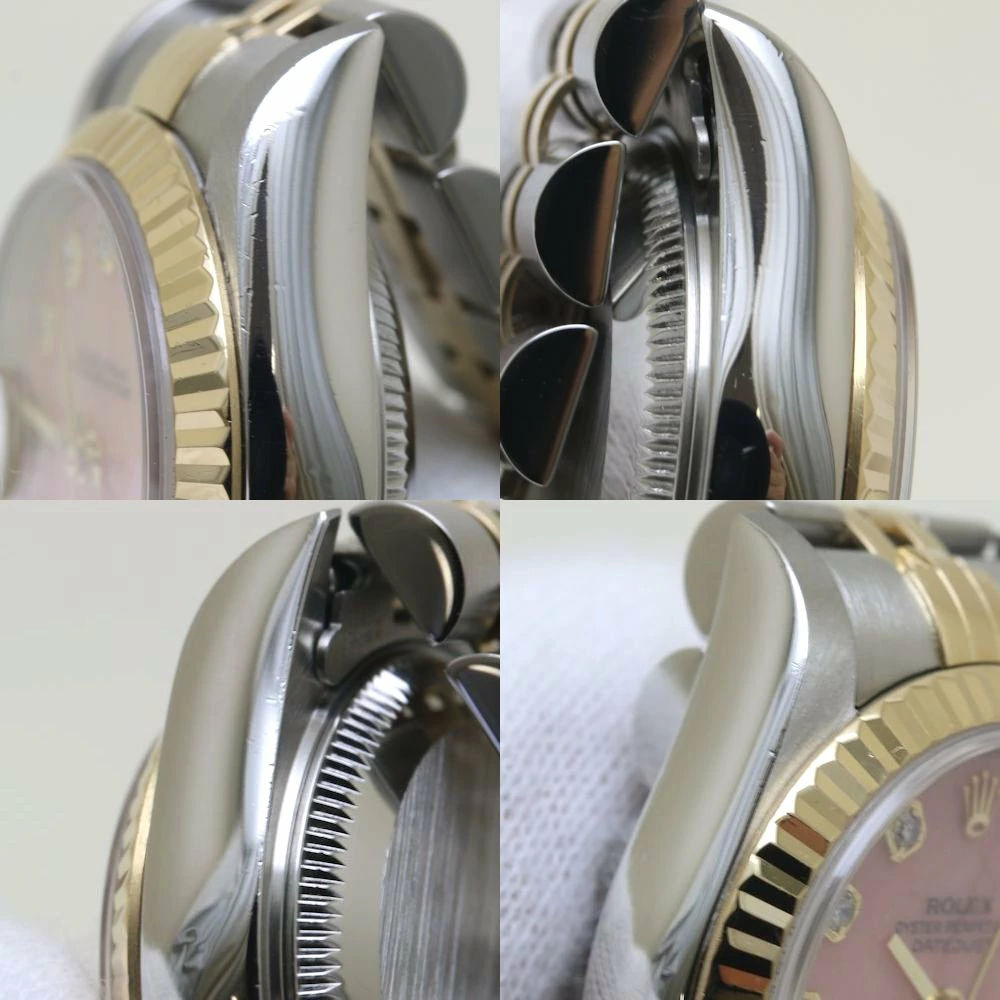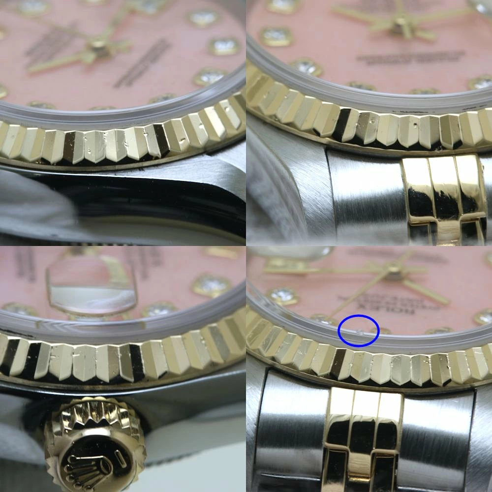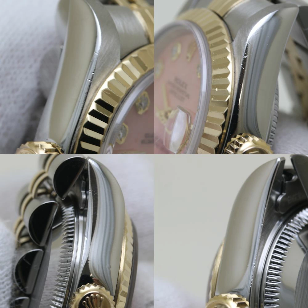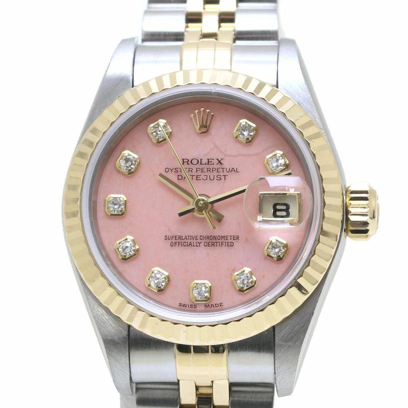 | 商品説明 | | 取扱店舗 | 銀座店 (TEL03-6264-4880) | | 状態 | 中古ABランク | | 型番 | 79173OPG | | 素材 | K18YG イエローゴールド / ステンレススチール | | 文字盤 | ピンクオパール/10Pダイヤモンド | | サイズ | [ケース幅]約26mm(リューズ除く) [腕周り]最大約17.5cm