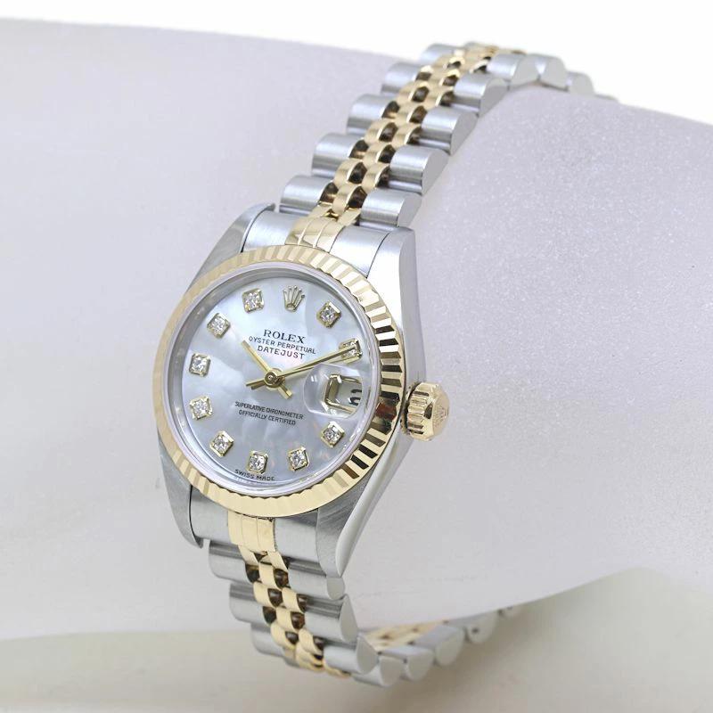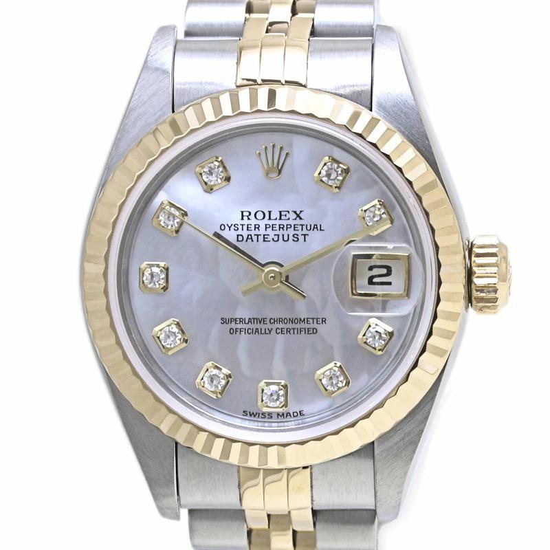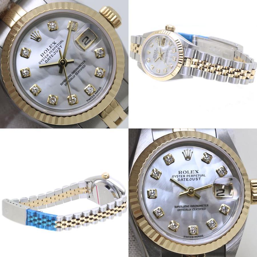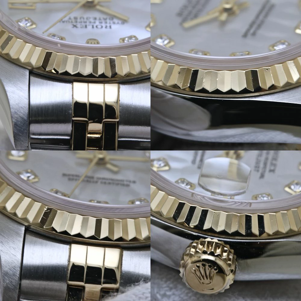 | | 商品説明 |  | | 取扱店舗 | ミドリヤ本店 |  | 状態 | 中古Aランク |  | 型番 | 79173NG |  | 素材 | K18YG イエローゴールド / ステンレススチール |  | 文字盤 | ホワイトシェル/10Pダイヤモンド |  | サイズ | [ケース幅]約26mm(リューズ除く)