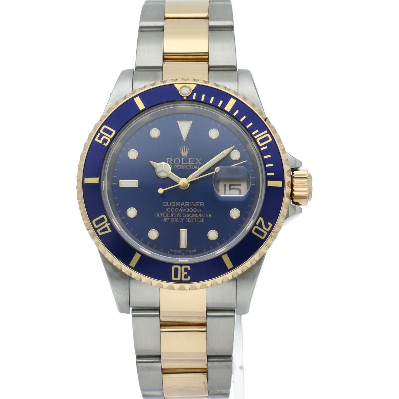 商品説明:ロレックスの中でも特に人気度の高い「サブマリーナ・デイト」のイエローゴールドとステンレスのコンビモデルで高級感溢れる1本。通称「青サブ」。
