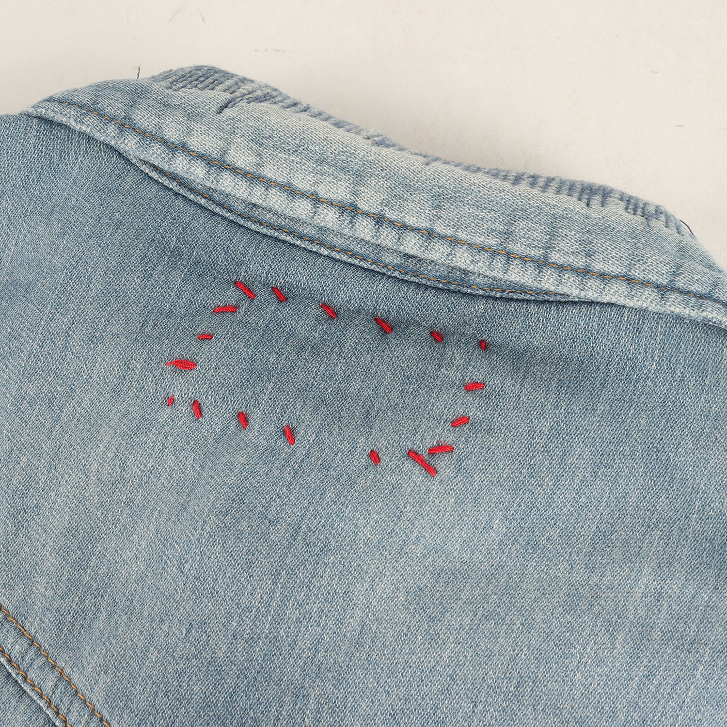 | 商品説明 | ・伸縮性のあるストレッチコットン/ナイロン混紡ミニ裏毛スウェット生地 ・ヴィンテージクラッシュリペア加工 ・ウエスタンヨーク ・ラウンドカット |