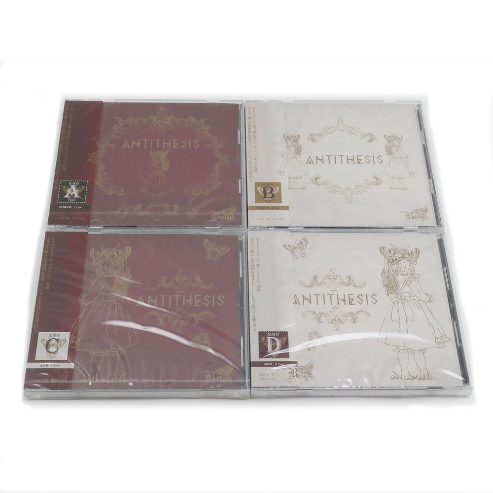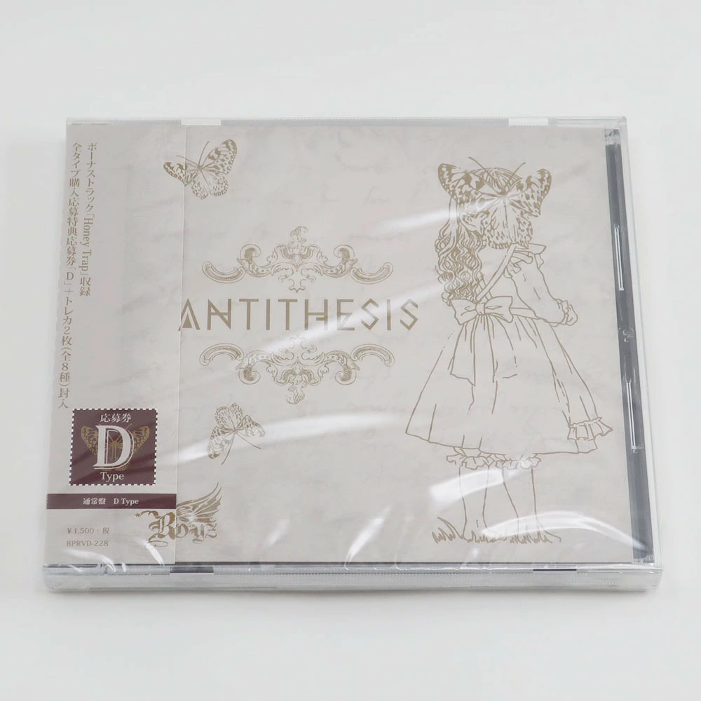 | 商品説明 | 4枚とも未開封品です。 初回限定盤 2枚 A type:CD+DVD「ANTITHESIS」PV&オフショット収録、全タイプ購入特典応募はがき+応募券「A」+トレカ2枚(全8種類)封入 B type:CD+DVD「ANTITHESIS」マルチアングルPV収録、全タイプ購入特典応募券「B」+トレカ2枚(全8種類)封入 通常盤 C type:ボーナストラック「メイズギア」収録、全タイプ購入特典応募券「C」+トレカ2枚(全8種類)封入 D type:ボーナストラック「Honey Trap」収録、全タイプ購入特典応募券「D」+トレカ2枚(全8種類)封入 ※クリックポストでの発送ですので、代金引換のお支払い方法はご使用できません。 ポスト投函ですので、配達希望日時のご指定も出来かねます。 (追跡番号あり、保証なし) ご了承下さいませ。 |