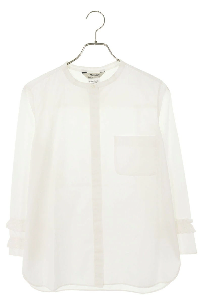 S Max Mara Ruffled Poplin Long Sleeve Shirt (White) Size: 36 (Product Code: 919602196) [214052] [BS99] [Women's] [Pre-owned] bb51#rinkan*B