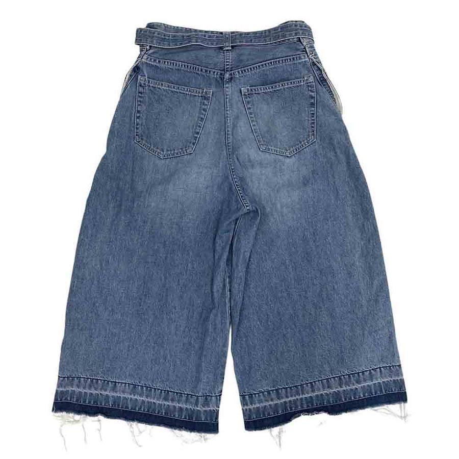 インディゴブルー系【モデル】カットオフ デニム ショーツ ワイド パンツ