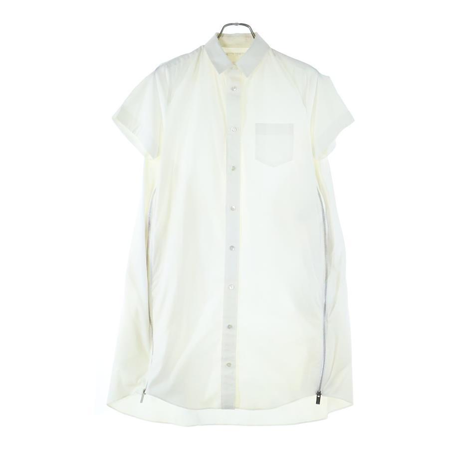 [モデル]18SS サイドジップ スリット 半袖シャツワンピース ホワイト レディース 18-03618