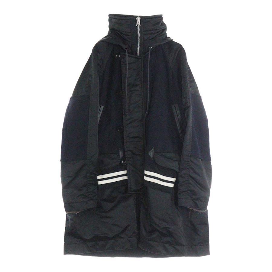 [モデル]21AW ナイロン切替 ドッキング ボンバーウールコート カーキ ブラック 21ー02622M