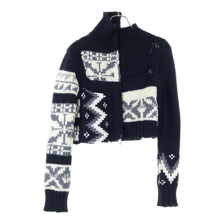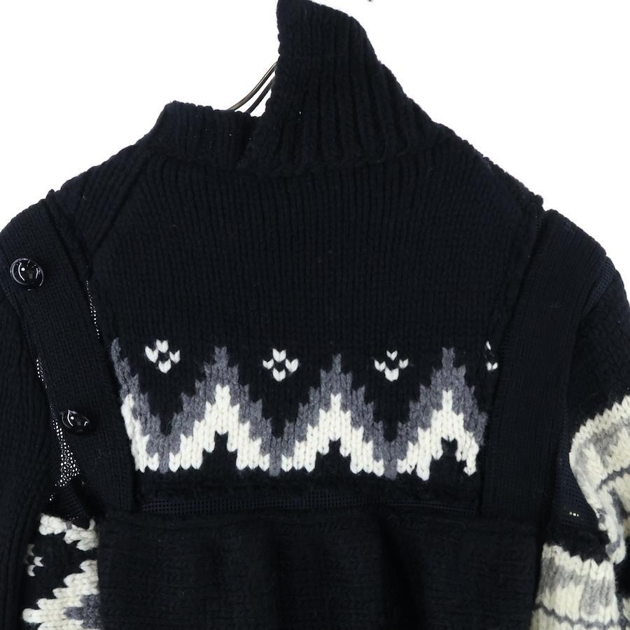 Sacai 22AW Nordic Patchwork Design Knit Cardigan, Black, 22-06285, Size 1, Black/White
